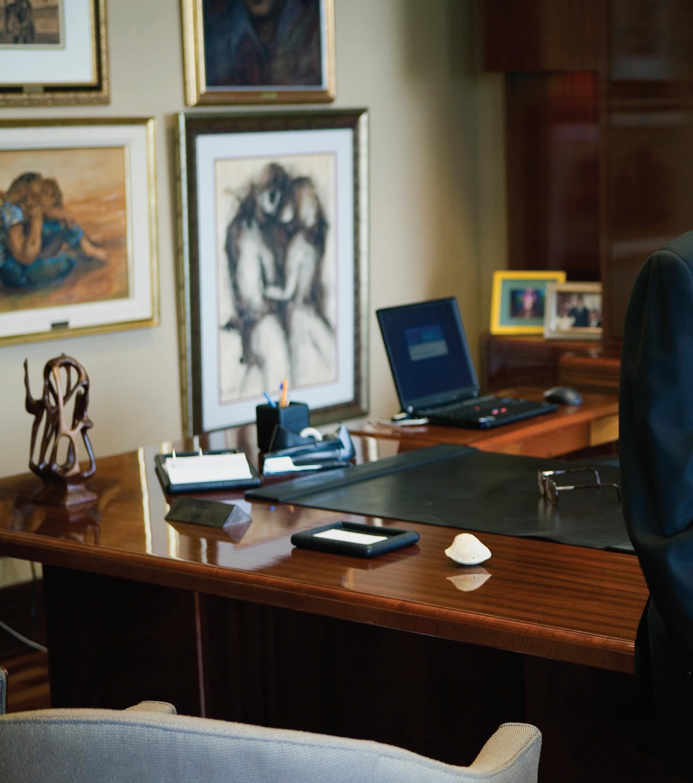 mento de la vida, cada uno trata de hallar su camino. Una visión prende en la mente tras otra, pero sólo unos pocos se cercioran hasta elegir una y perseguirla encelados del destino. Fundar un banco privado enteramente dominicano, el primero, era una cruzada contra el capital que acechaba sobre un país en mocedad económica, la doncella pretendida por el poderoso que se expande en sus dominios. Don Alejandro Grullón escogió así el arma que el astuto caballero afila antes de cualquier batalla, el sentido de la oportunidad. “El país contemplaba la ausencia de las instituciones frente a la crisis después de la muerte de Trujillo y la falta de educación superior. El sector privado era muy débil durante la dictadura y, en junio de 1961, un grupo de amigos en Santiago nos dimos cuenta de que teníamos que hacer algo para ayudar a la República Dominicana a marchar hacia delante, en el momento en que se abría un compás de libertad.”