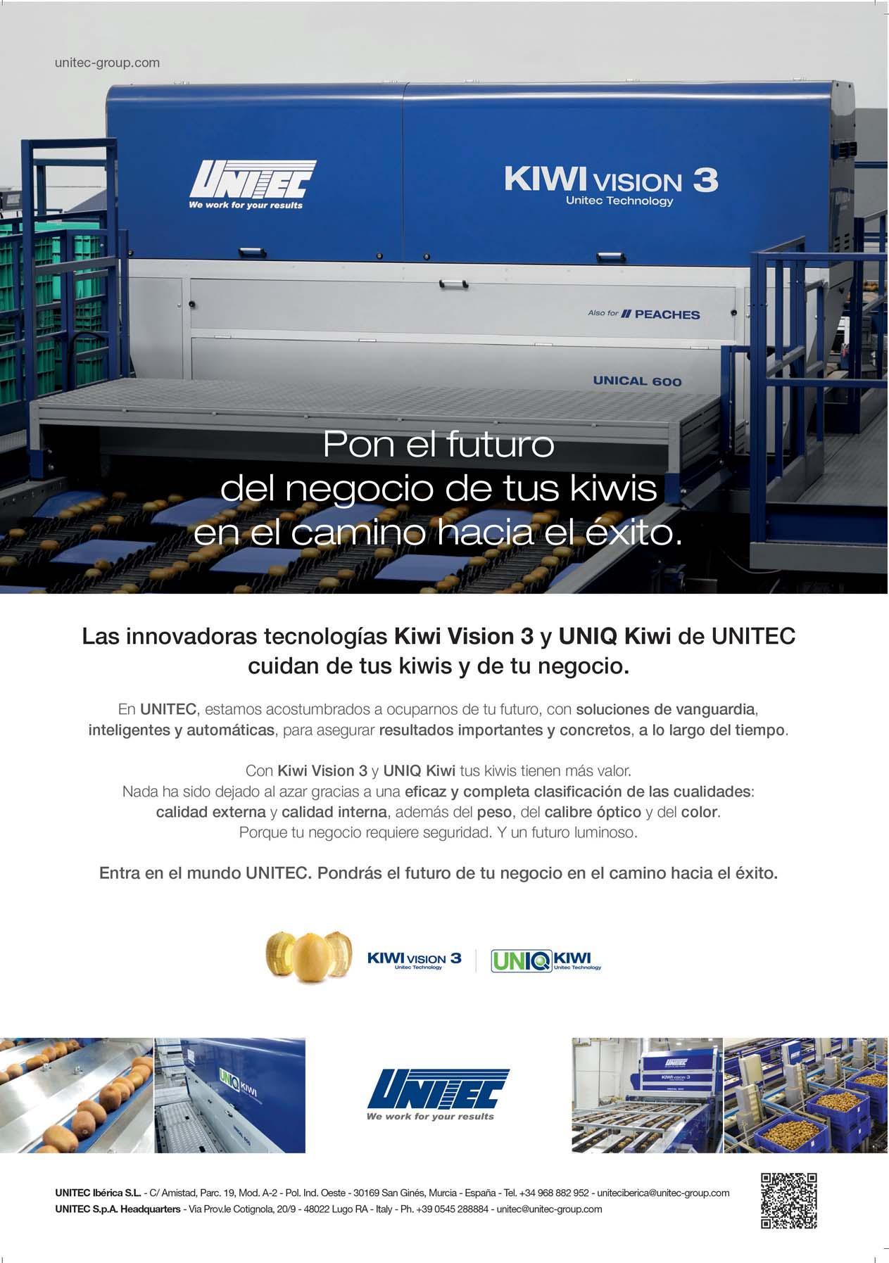 Gracias a una experiencia madurada en casi 100 años de historia, UNITEC ofrece una fiabilidad y una precisión sin precedentes en la clasificación de los parámetros de calidad externa como defectos de forma, fruta blanda y calibre, gracias al sistema Kiwi Vision 3, y de calidad interna, detectada por UNIQ Kiwi.