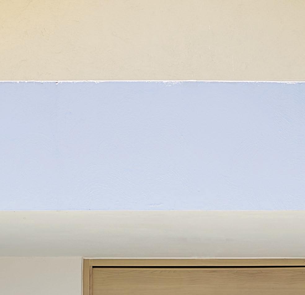 De proporciones generosas y tonos verdes y blancos, flotan a distintas alturas, mientras un papel decorativo de hojas enfatiza la altura de las paredes.