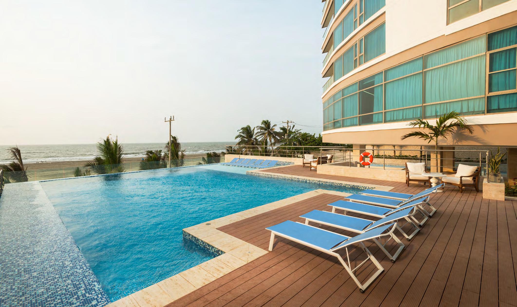 Cuenta con instalaciones amplias, modernas y confortables, donde prima la limpieza, la frescura y un atractivo diseño en cada espacio; con piscinas y jacuzzis exteriores, además de tres bares, dos restaurantes y acceso directo desde el hotel a las playas de La Boquilla, sumados a una variada oferta de 233 habitaciones en las categorías Superior, Junior Suite y Master Suite.