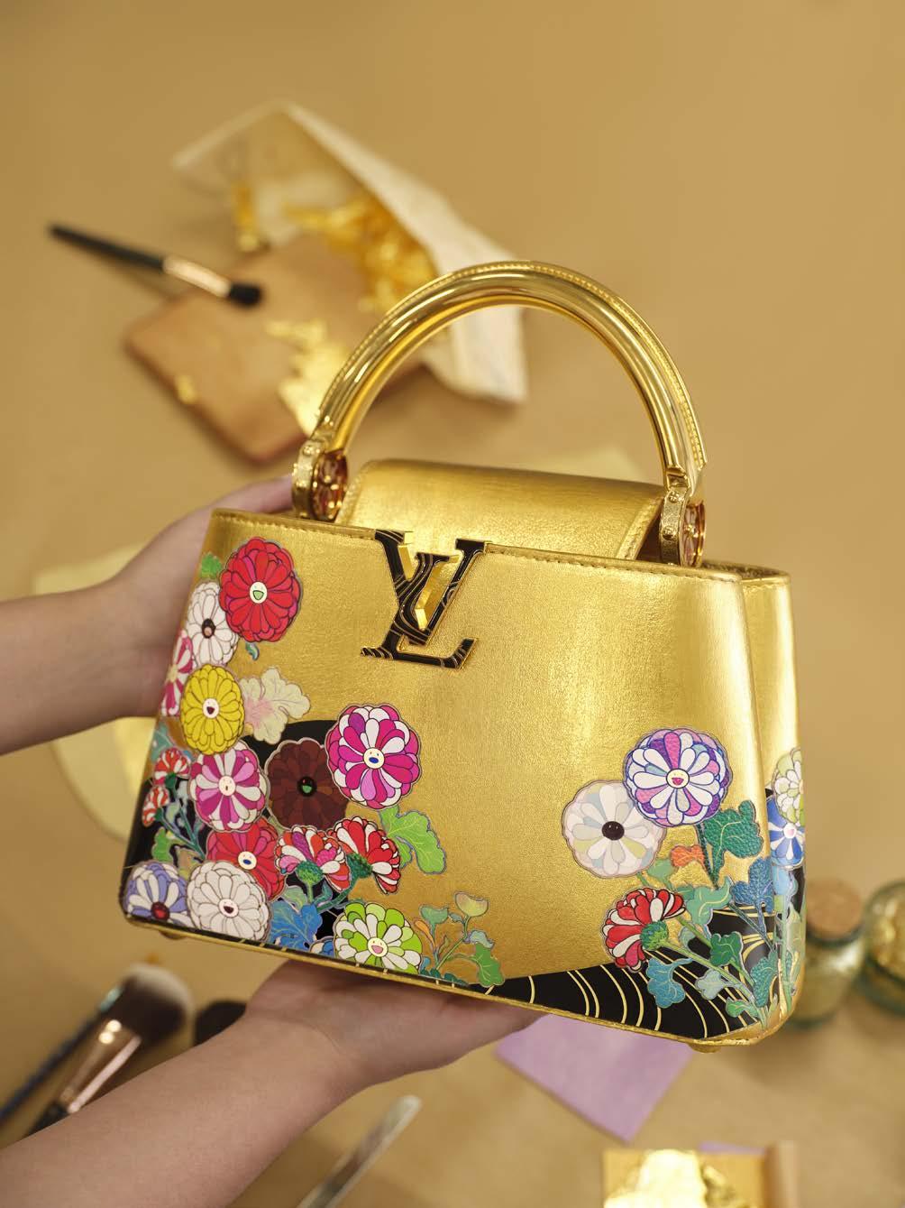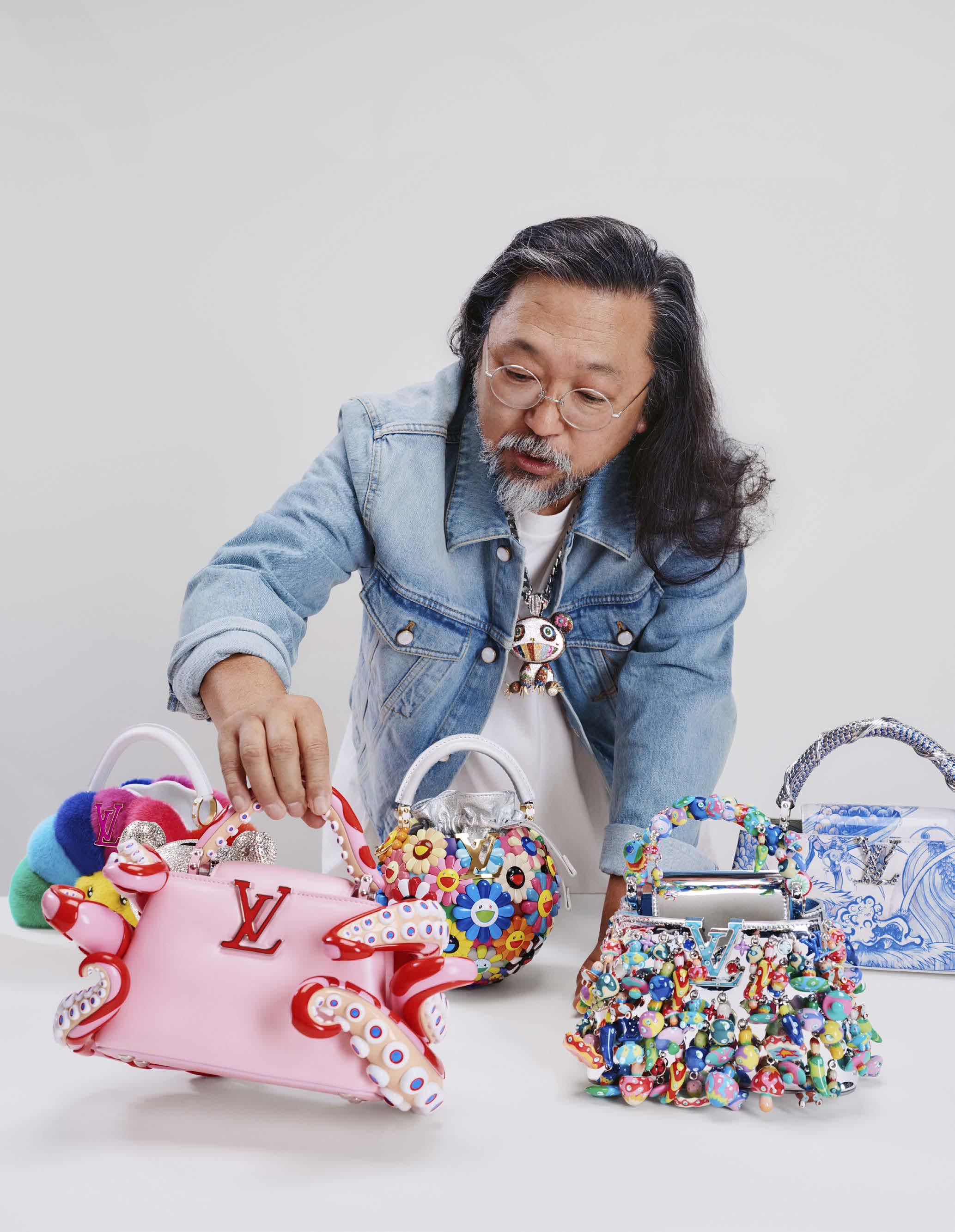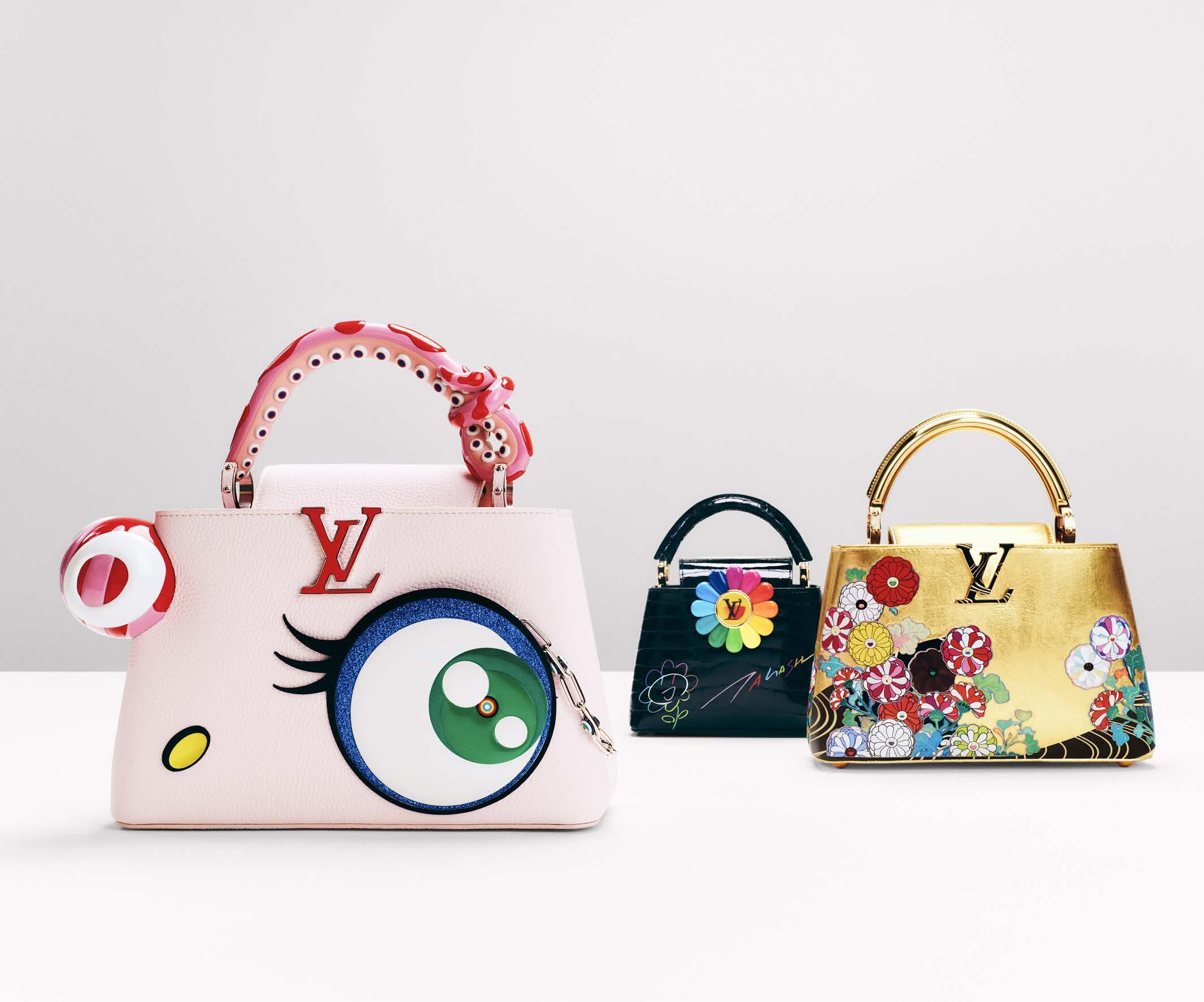 Junto con el equipo de diseño de Louis Vuitton, Murakami reinterpreta el bolso Capucines en obras de arte portátiles de sublime escultura. Entre las piezas más destacadas se incluyen el Capucines EW Rainbow, el Capucines Mini Mushroom, el Capucines Mini Tentacle, y el Capucines EW Dragon. Capucines BB Golden Garden, y un destacable Panda Clutch, entre otros.
