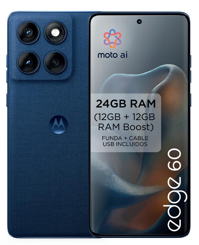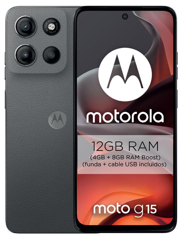 Pantalla 6,95” Full HD+ 120 Hz · 256 GB (MicroSD: hasta 1TB) · 8GB RAM · Cuádruple cámara 50MP+5MP(gran angular) + 2 MP (profundidad) +2MP (macro)· Frontal 16MP · Qualcomm Snapdragon DM695 Octa Core hasta 2.2GHz · Android 14 · Batería 5.200 mAh con carga rápida (30W) · 5G.