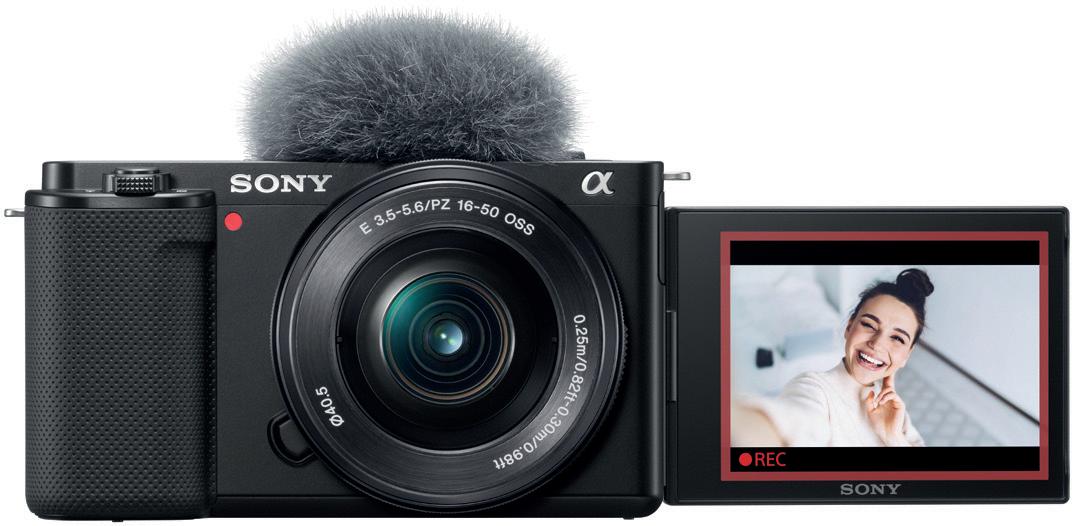 Diseñada como tu primera cámara para videoblogs. Objetivo prime ultra gran angular de 20 mm ideal para selfis grupales y paisajes de fondo (equivalente a formato de 35 mm). Pantalla LCD de ángulo variable para selfis. 425 puntos AF detección de contraste en el encuadre para enfocar con alta precisión. Paravientos para grabación de voces clara en exteriores. Micrófono direccional incorporado de 3 cápsulas para grabar audio de alta calidad.