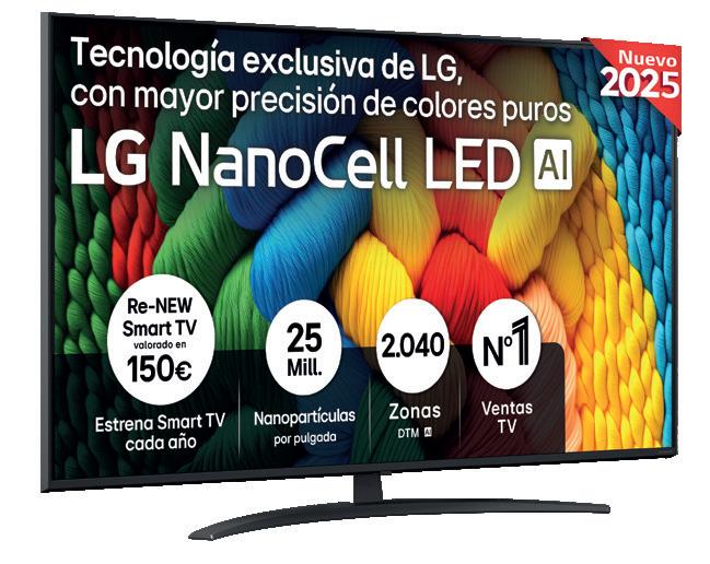 Mayor contraste y brillo en la imagen, 2.040 zonas Dynamic Tone Mapping con Local Dimming · Procesador Inteligente α7 AI Processor 4K Gen8 · WebOS 25 IA con Copilot · Dolby Digital Plus, α7 AI Sound Pro (Virtual 9.1.2 Up-mix) , WOW Orchestra, AI Acoustic Tuning, 2.0 ch 20W · Asistentes de voz ThinQ, Alexa, funciona con Google Assistant y Home Kit · WiFi 5 y BT 5.1 · Screen Share, Air Play 2, Chromecast Integrado · HGiG, ALLM, Cloud Gaming · 3 HDMI 2.0 + 2 USB + LAN + CI + Salida audio digital · DVB-T2/T/S2/S/C · Mando Magic Remote · VESA 300X300.