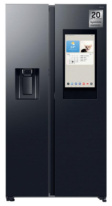 Capacitat 614 litres (389 l frigo, 225 l congelador). Gràcies a la seva pantalla de 21,5”, organitza el teu dia, gaudeix d’entreteniment (música, vídeos i internet). Comparteix fotos i notes i controla els teus dispositius connectats. Estalvia fins a un 10% d’energia gràcies a la IA. Assistent de veu amb IA Bixby. Toca el sensor i la porta s’obre automàticament. Tecnologia Twin Cooling Plus amb doble circuit de refrigeració que evita la barreja d’olors i manté un nivell d’humitat òptim. Cool Select+ per adaptar el congelador a 4 modes de temperatura diferents segons et faci falta.