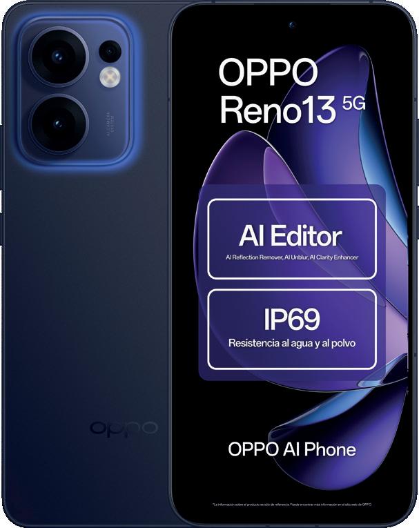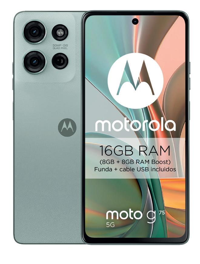 8 GB RAM · Càmera quàdruple de 50 Mpx + 5 Mpx (angular) + 2 Mpx (profunditat) + 2 Mpx (macro) · Frontal de 16 Mpx · Qualcomm Snapdragon DM695 Octa Core fins a 2,2 GHz · Android 14 · Bateria de 5.200 mAh amb càrrega ràpida (30 W) · 5G.