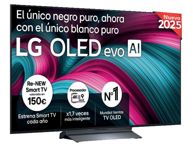Smart TV OLED 120 Hz (VRR 144 Hz). Processador intel·ligent α9 AI Processor 4K Gen8. Smart TV webOS 25 IA amb Copilot amb control per veu sense comandament. Pixel Dimming, Dolby Vision / HDR10 / HLG, FILMMAKER MODE™. 40 W (2.2 canals), Dolby Atmos, AC4, α9 AI Sound Pro (Virtual 11.1.2 Up-mix). Assistents de veu: ThinQ, Alexa, Google, Apple Home. WiFi 6 i BT 5.3. Reprodueix continguts sense fil: GoogleCast, Screen Share, Air Play. Gaming: VRR 144 Hz, ALLM. Compatible amb nVidia G-Sync / AMD FreeSync. Cloud Gaming: X-Cloud, GeForce Now, Luna, Utomik, Boosteroid, Blacknut. 4x HDMI 2.1 + 3x USB + LAN + sortida d’àudio digital. DVB-T2/T/C/ S2/S. Magic Remote. VESA 300x200.