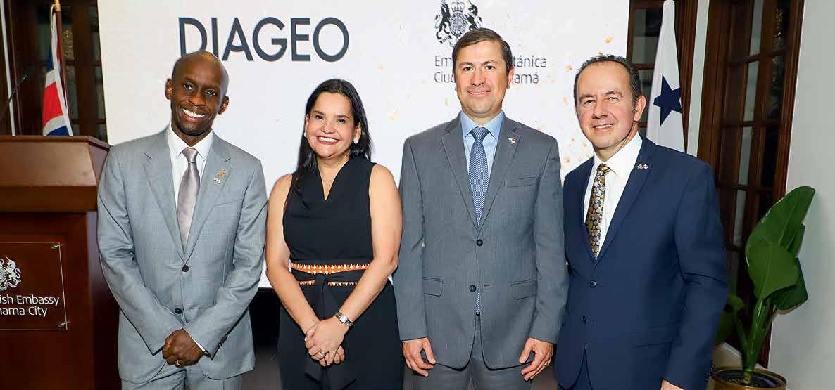 Tim Stew, Embajador de Su Majestad Británica en Panamá y Alvin Mbugua, Director General de DIAGEO Caribe y Centroamérica, invitaron a un coctel de celebración, con motivo de la conmemoración del vigésimo aniversario de presencia de DIAGEO en la Región de Centroamérica y Caribe, el cual contó con altos funcionarios, diplomáticos y empresarios.