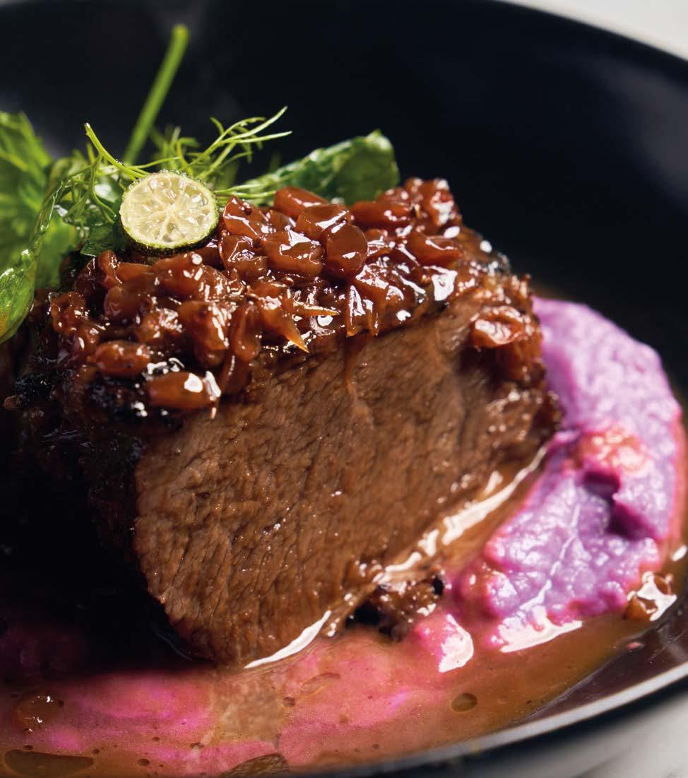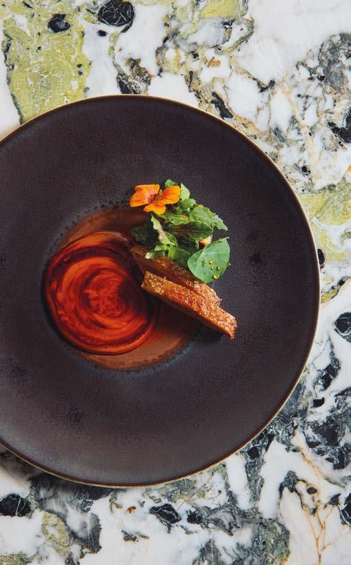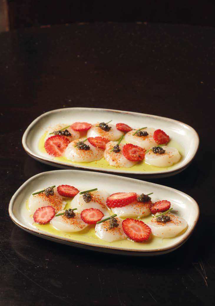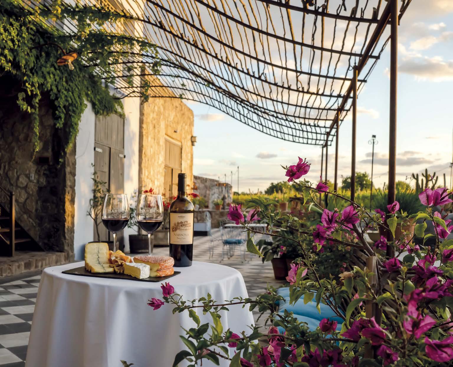Menú de autor maridado con vinos premium, entre viñedos y sierras. Menu autoral harmonizado com vinhos premium, entre vinhedos e serras.