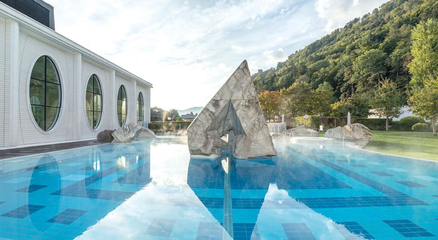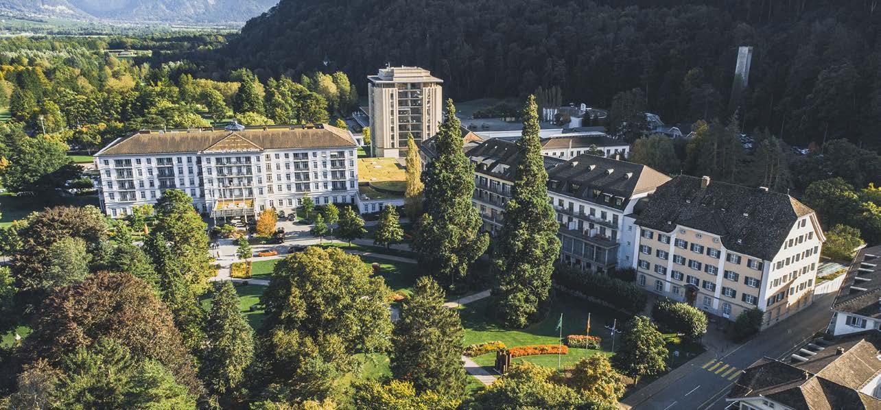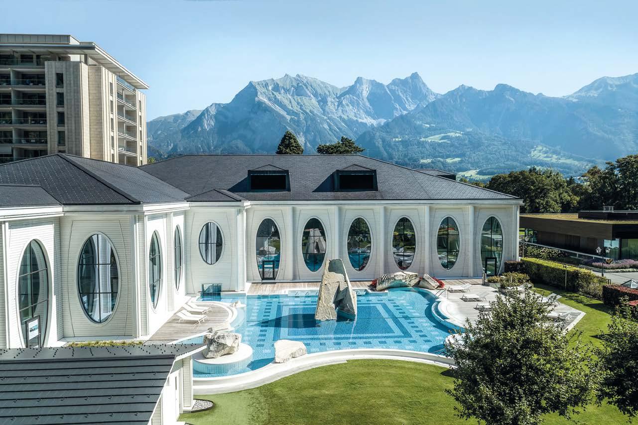 Grand Resort Bad Ragaz (Bad Ragaz, Suíça) Situado em uma paisagem suíça idílica, o Grand Resort Bad Ragaz é muito mais do que um hotel de luxo: trata-se de um verdadeiro templo do bem-estar, com uma história que remonta ao século XIII, quando um grupo de caçadores descobriu as águas termais que até hoje são a alma desse santuário de saúde.