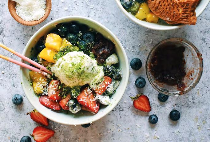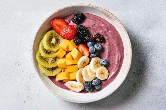El açaí, fruta amazónica de alto valor energético, se consume como puré congelado servido en bowl y acompañado de frutas y granola. Se ha convertido en una opción refrescante y nutritiva, estrechamente asociada al clima cálido.