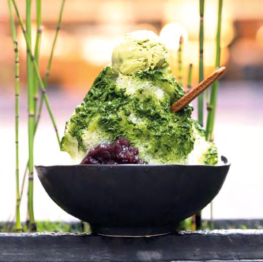 El hielo finamente rallado se convierte en una expresión estética del verano japonés. Se sirve con siropes, leche condensada y toppings como fruta fresca, matcha o anko. Destaca por su ligereza y delicada presentación.
