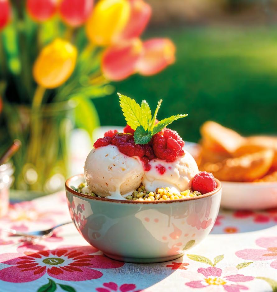 El sorbet, elaborado únicamente con fruta, agua y azúcar, representa la elegancia de la sencillez francesa. Refrescante y ligero, pone en valor la calidad de frutas como frambuesa, limón o melón durante la temporada estival.