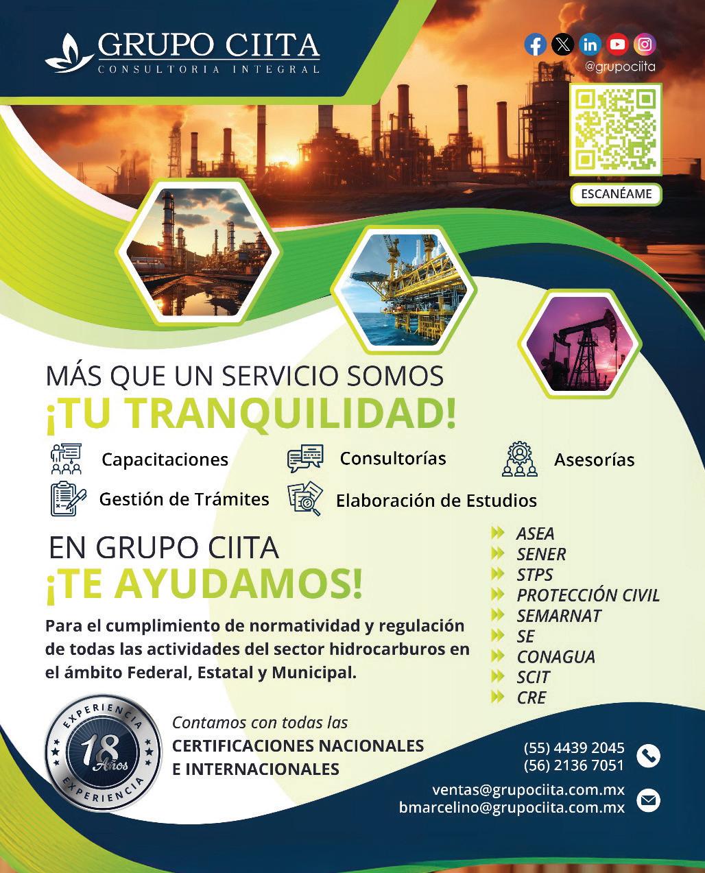 Petróleo & energía es publicada bimestralmente por ALIANZA DE PETROLEO GAS Y ENERGIA SAPI de CV Bismarck esquina Rubén Dario 35-A, Moderna, Benito Juárez 03510, CDMX; Teléfono 91365100. Miembro activo de la Cámara Nacional de la Industria Editorial Mexicana No. 1864. El título de la revista, así como el contenido se encuentran debidamente autorizados y protegidos por la Comisión Calificadora de Revistas y Publicaciones Ilustradas, Secretaria de Gobernación como consta en el certificado de licitud de título y contenido No.15107. Asimismo esta solicitud se encuentra protegida y registrada ante el Instituto Nacional del Derecho de Autor, de la Secretaria de Cultura, según consta en la reserva de derechos No. 04-2018-041111363400-102. Porte pagado y autorizado por SEPOMEX número PP09-1871; Publicada bimestralmente por Alianza de Petroleo Gas y Energia SAPI de CV Edición 152, DIciembre 2024 / Enero 2025. Las opiniones vertidas en este número no son necesariamente las del editor. Se encuentra totalmente prohibida la reproducción parcial o total por cualquier método de esta publicación. De esta edición fueron impresos 25,000 ejemplares.