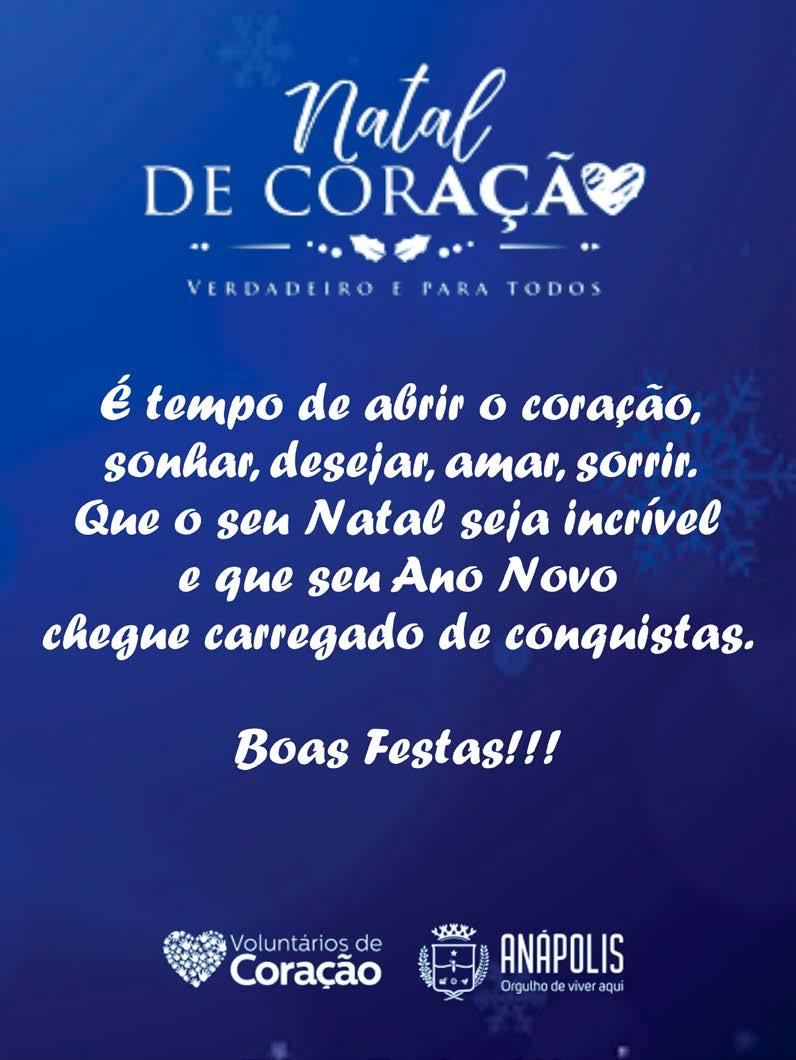 Criado pelo prefeito Roberto Naves e pela primeira-dama Vivian Naves, o Natal de Coração, realizado pela Prefeitura nos finais de cada ano, atendeu mais 50 mil pessoas em Anápolis, somente em sua última edição, realizada em 2021. Os distritos, que recebem as atividades aos sábados, são um exemplo de que a intenção é abraçar toda a cidade e fazer com que o espírito natalino chegue para toda a população, que antigamente precisava ir à Pra-