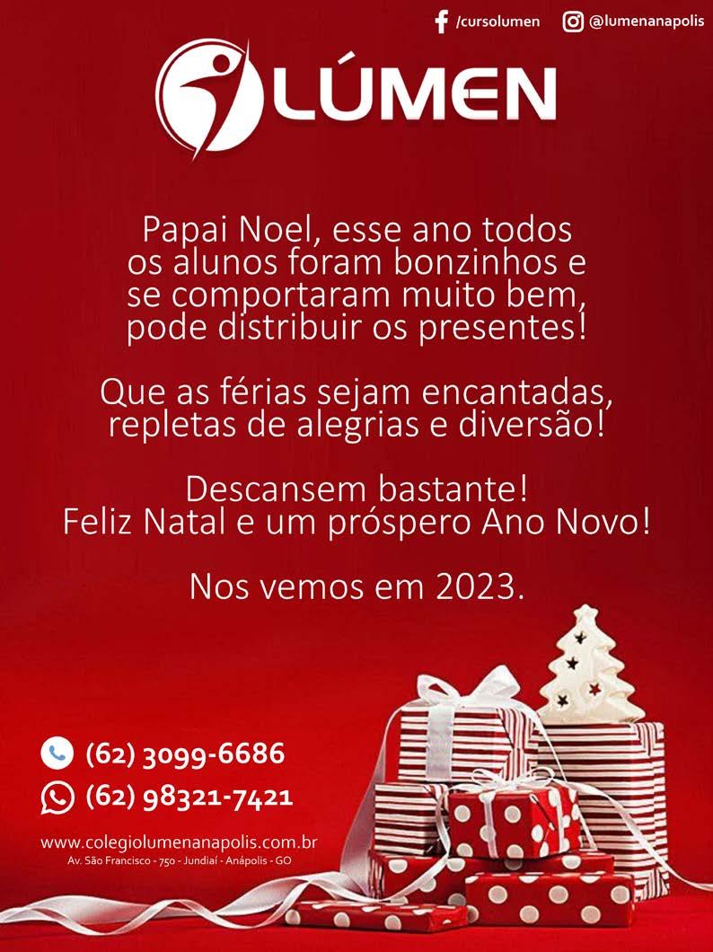 Ao longo de todo o mês, mas com programação especial no dia 25/12, o brilho das luzes em comemoração ao nascimento de Jesus Cristo marcarão o Natal Luz, evento que há anos é atração na cidade. No dia 31/12, fechando a programação, comunidade e visitantes se confraternização no mais tradicional Réveillon do interior goiano.