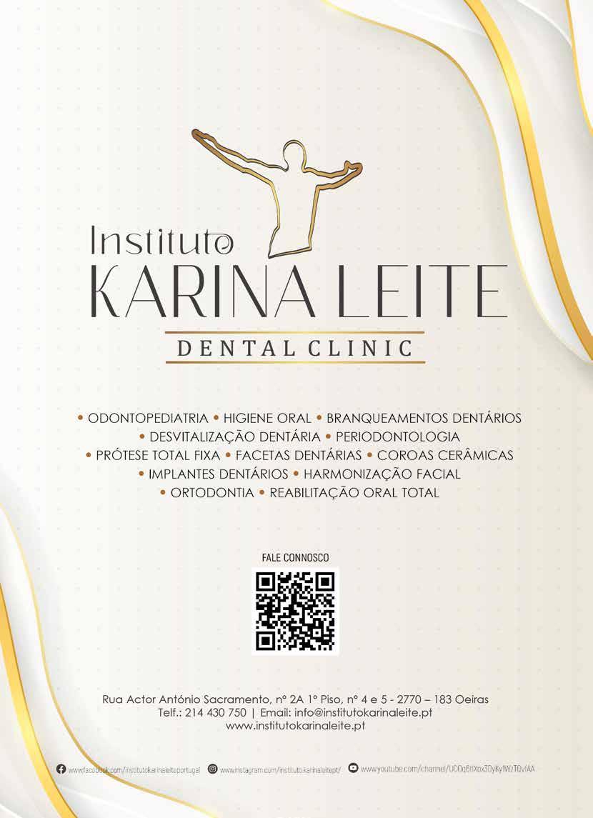 RESILIÊNCIA, PAIXÃO E DEDICAÇÃO. ESTES SÃO TRÊS DAS CARATERÍSTICAS QUE FAZEM DE KARINA LEITE, ODONTOLOGISTA, UM EXEMPLO DE LIDERANÇA. ACOMPANHE-NOS NESTA VIAGEM E VENHA CONHECER ESTA MÉDICA DENTISTA QUE NOS FALOU DO SEU PERCURSO DE VIDA E DO CONCEITO INOVADOR QUE APLICA NAS SUAS CLÍNICAS E DOS MOTIVOS QUE A LEVARAM A SALTAR PARA O CONTINENTE EUROPEU E A CRIAR O INSTITUTO KARINA LEITE PORTUGAL, NA CIDADE DE OEIRAS, NO INÍCIO DE 2022.