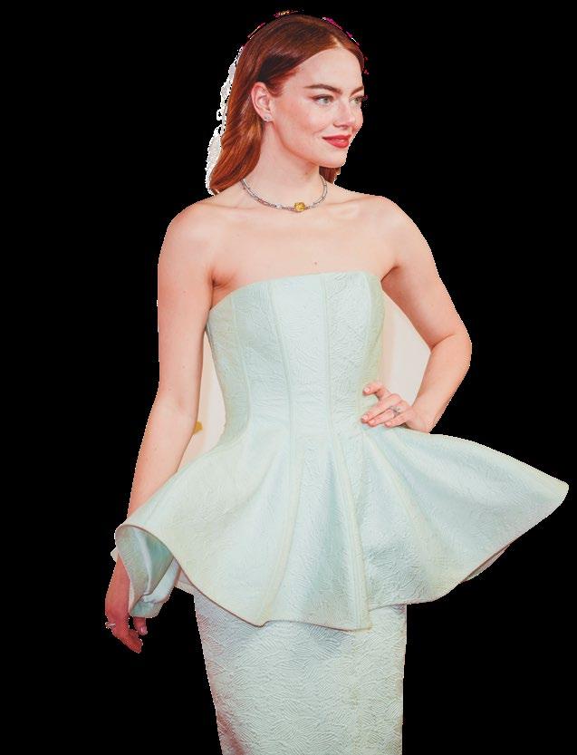 Otra actriz que se unió al ‘Barbiecore trend’ fue Brie Larson, con un look de Versace a dos piezas con el que quiso arriesgar des tacando como la más deslumbrante de la noche. El estilismo consistía en un croptop de manga larga que dejaba al descubierto sus impresionantes abdominales y una fal da XXL de tejido efecto satinado.
