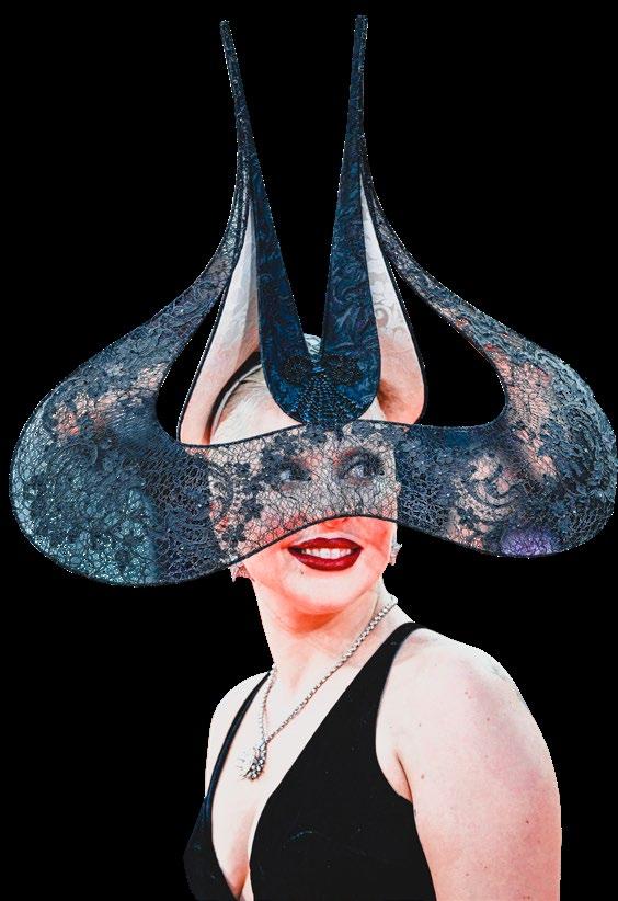 Fiel a su estilo excéntrico, la estadounidense de 38 años añadió el accesorio estrella a su impresionante look: un edificante tocado de encaje y detalles de pedrería brillantes que forma parte del archivo de colección del sombrerero irlandés Philip Treacy.