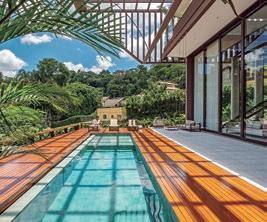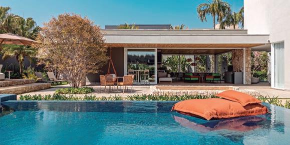 CASA OÁSIS: Situada em Itu, a Casa Oásis é um convite ao descanso e à conexão com a natureza. Com uma arquitetura tropical que privilegia a integração entre os ambientes, o projeto destaca uma piscina em formato de lago natural, criando uma experiência sensorial única. Entre o uso de materiais como pedra e madeira, a residência é o perfeito equilíbrio entre elegância e funcionalidade, voltada para o lazer e o bem-estar.