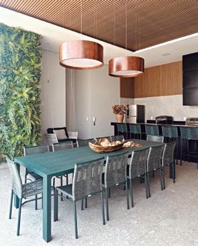 Neste projeto, a integração entre os ambientes é central. A área de lazer foi cuidadosamente conectada a casa, promovendo fluidez entre os espaços e proporcionando maior convivência. Além disso, o projeto inclui um jardim vertical ao lado da academia, reforçando a conexão entre arquitetura e natureza.