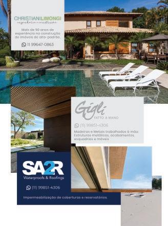 CASA MARÉ: Esse projeto em Angra dos Reis (RJ) é uma imersão no conceito de luxo integrado à natureza. Com mais de 3.700 m² de área construída, o projeto se define pela grandiosidade e sofisticação, oferecendo uma experiência de casa resort. Complexo de lazer, heliponto, salão de festas, piscina e espaços amplos são elementos que traduzem a fusão entre conforto absoluto e a conexão com o cenário exuberante, garantindo toda a diversão das férias da família, em casa.