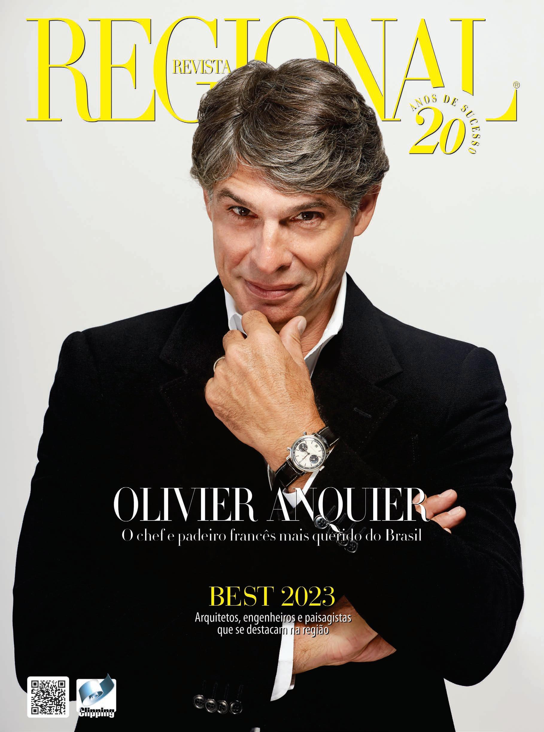 á 20 anos no mercado editorial, com publicações direcionadas a um público de condomínios, Regional se firmou como uma revista premium, com conteúdo de lifestyle que traduz o comportamento de seus leitores. E, fazendo jus a esse status, Regional atesta a credibilidade de seus parceiros, principalmente quando se refere ao caderno Best, desta vez de Arquitetura, produto anual da revista e que, desde 2022, passou a rechear sua edição de novembro. O Best traz uma seleção só com os grandes nomes da arquitetura, engenharia, decoração, design e paisagismo da região. Um verdadeiro timaço, digno dos maiores prêmios nacionais. Ficou curioso e quer conhecer a nata do segmento em 2023, com o aval da maior revista de lifestyle da região? São mais de 50 páginas distribuídas por toda a edição reunindo os perfis desses profissionais, seus maiores projetos, sejam eles recentes ou os mais icônicos do portfólio, e ainda as principais empresas do segmento de casa & construção da região, numa união perfeita entre arquitetos e fornecedores. Para quem está construindo ou reformando e tinha dúvida sobre quem escolher ou onde comprar, o caderno Best certamente tem a solução! Falando em arquitetura, diz o ditado que toda casa precisa de vida, senão será apenas um showroom, sem conforto e sem funcionalidade. Assim como dizem que uma casa para ser um lar precisa de cheiro de bolo assado e de café coado na hora (não vale cápsula!). São duas citações que refletem a importância do morar, de vivenciar cada cantinho da casa, de receber família e amigos, e de produzir memórias e referências afetivas. Nosso entrevistado da capa desta edição é um ícone da gastronomia que traduz muito bem essa questão da família e do lar. Falo de Olivier Anquier, o francês que há 40 anos veio passar férias no Brasil e nunca mais foi embora. Considerado um dos mais renomados e queridos chefs e padeiros do Brasil, Olivier revela, nessa conversa exclusiva com a Regional, sua profunda conexão com a gastronomia e as influências do pai na culinária e da mãe na panificação. Dono de restaurantes e padarias em São Paulo e apresentador de TV – ele fez durante vários anos o “Diário do Olivier”, no GNT -, Olivier fala ainda sobre família e ensina os segredinhos de um bom chef! Verdadeiro símbolo da gastronomia, sem dúvida, é um orgulho apresentar o Olivier nesta edição que tem a casa como tema central, atestando ainda mais a credibilidade de 20 anos da Regional, sempre com o melhor conteúdo de lifestyle da nossa região.