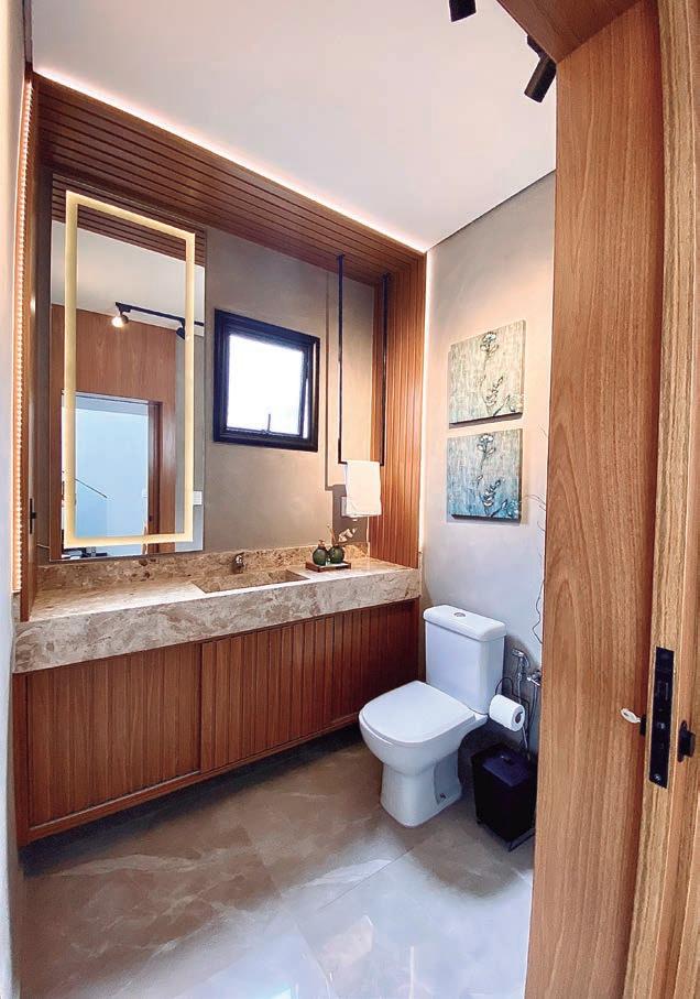Nas fotos a Residência Chicago, do condomínio Park Real, em Indaiatuba, com destaque para o living e lavabo em design arquitetônico contemporâneo e linhas retas.