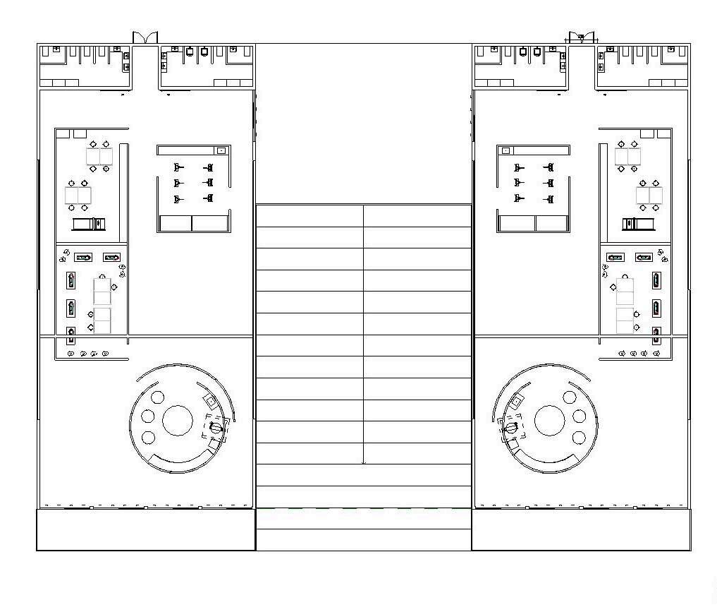 El edificio de oficinas es el punto de articulación administrativa del conjunto, diseñado para dar orden y soporte a todas las actividades del proyecto. Se compone de dos volúmenes simétricos separados por un vacío central, pero unidos por un mismo gran techo que los protege y los integra visualmente.