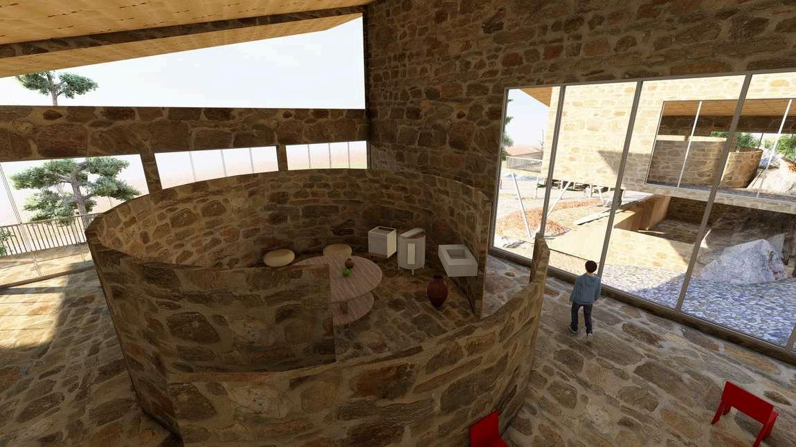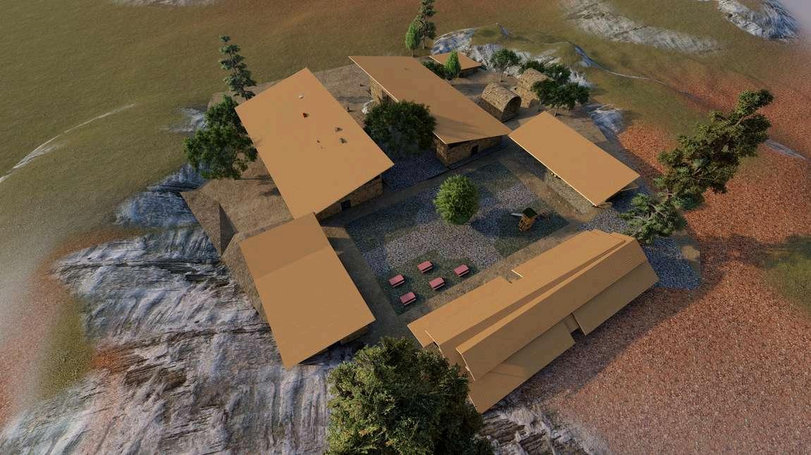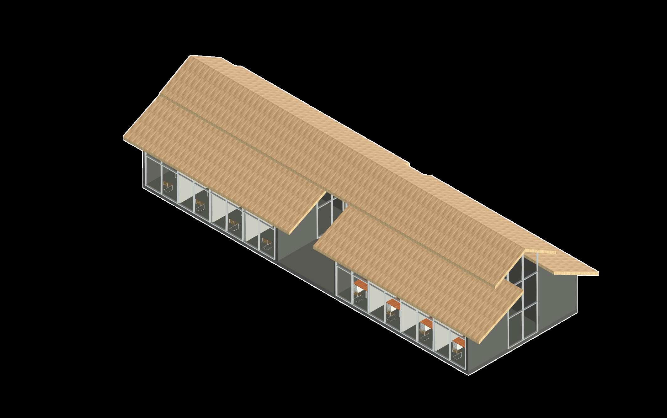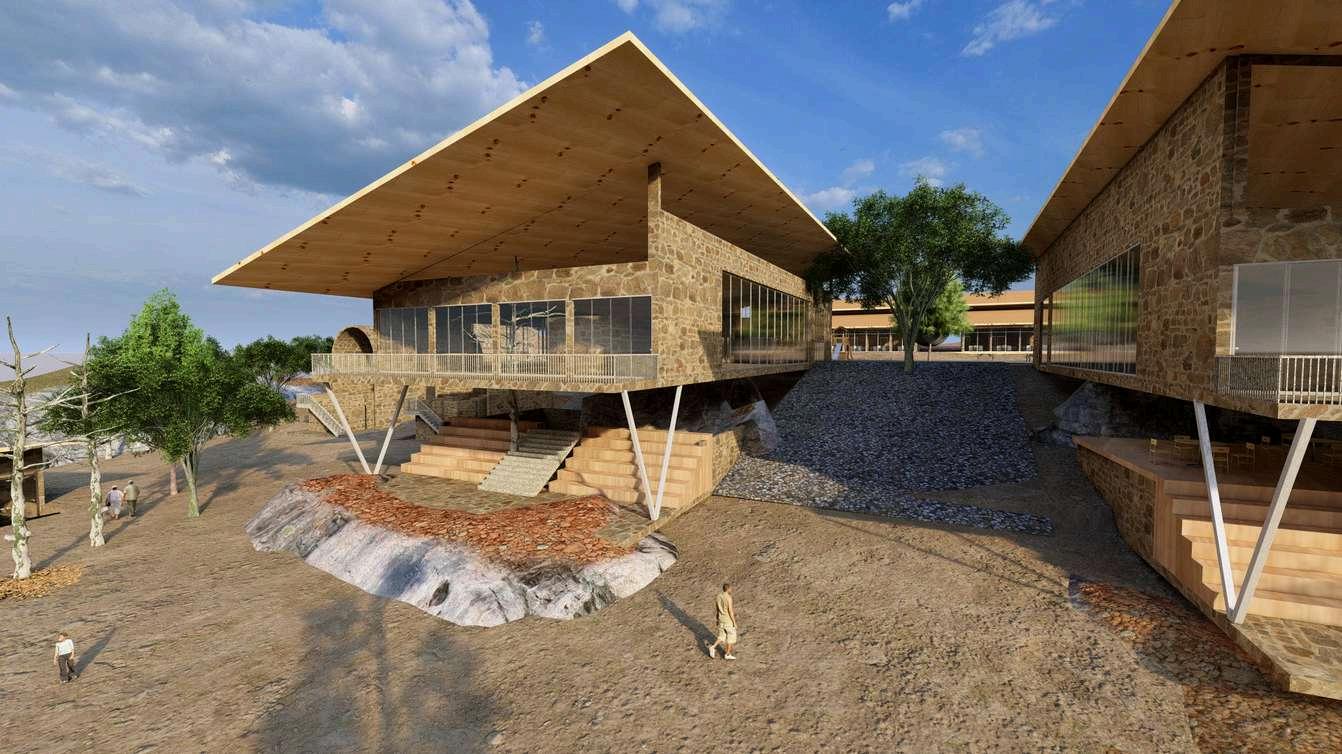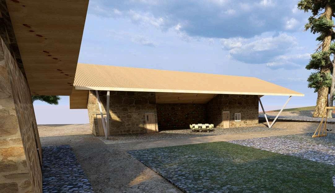 La repetición del diseño no responde solo a una cuestión formal o económica, sino a una intención profunda de continuidad y respeto. Ambos edificios comparten la misma materialidad —muros de piedra, techos de madera y una cubierta curva e inclinada— y esa decisión marcó el lenguaje que dio forma al resto del conjunto. Esta tipología, cálida y reconocible, se convirtió en la inspiración que dio unidad a todo el proyecto.
