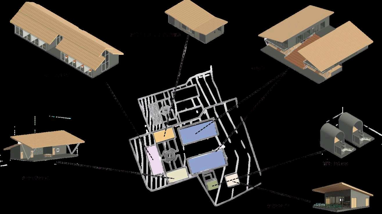 Y finalmente, al fondo, un acto de respeto: la Capilla Musical Kithara y la Biblioteca repiten forma y esencia. Decidimos conservar y replicar este edificio no solo por su belleza y funcionalidad, sino porque representa el inicio del diálogo arquitectónico con Yuguelito. Repetirlo no fue copiar: fue reconocer su valor como símbolo, como semilla del resto. Esta decisión dio identidad al proyecto entero, y sigue siendo un gesto de memoria compartida.