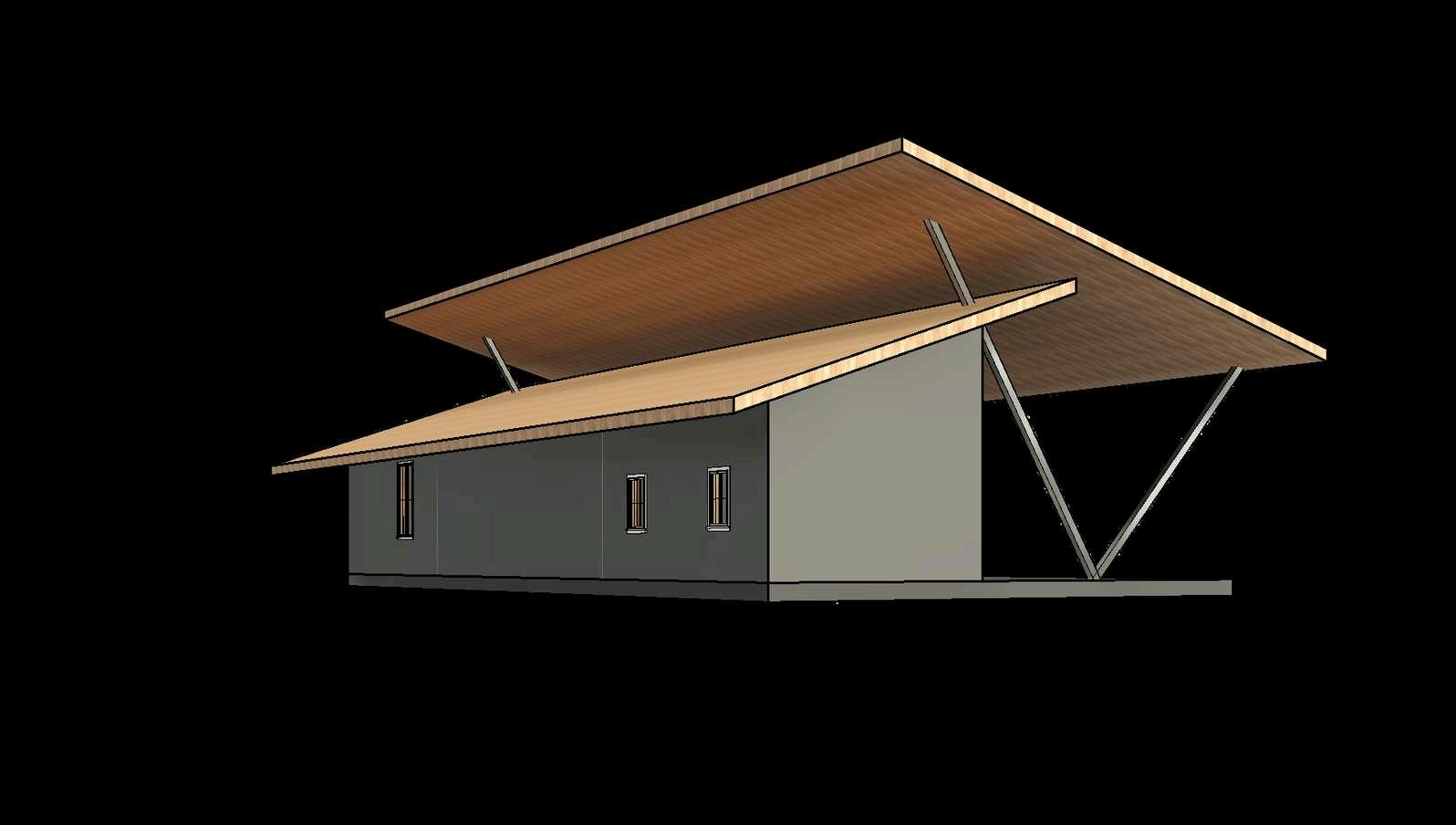 La base scout es un edificio pensado para responder a las necesidades reales del grupo scout de Yuguelito, quienes han logrado representar con orgullo a su comunidad a nivel regional y nacional. El edificio se compone de dos volúmenes unidos bajo un sistema de cubiertas que se complementan: un techo más pequeño protege las áreas cerradas —como baños, oficina y almacén— mientras que un gran techo inclinado, sostenido por columnas en “V” , cubre el área abierta de convivencia.