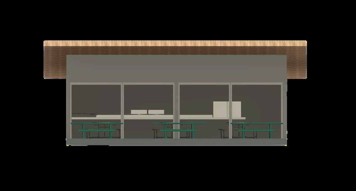 En la parte baja del terreno, donde la pendiente termina, la Cafetería se convierte en un punto natural de reunión. Su función no es menor: aquí se dan las charlas casuales, los encuentros espontáneos, las pausas necesarias. Es un espacio donde la vida cotidiana se mezcla con el proyecto, y le da sentido.