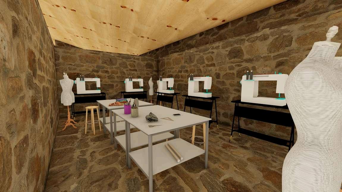 Edificio Principal en el centro del proyecto con actividades como talleres, costura, baile, cerámica y convivencia.