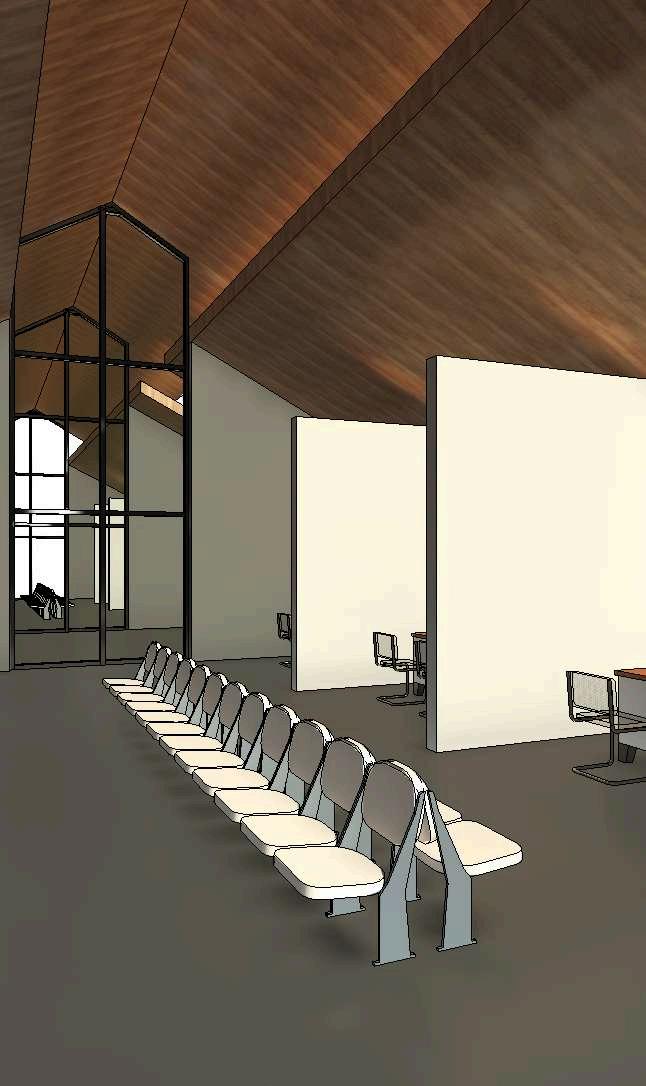 La Biblioteca hereda el carácter introspectivo de la capilla, pero lo transforma en un espacio de lectura, estudio y concentración. Por fuera, parecen iguales; por dentro, cada una responde a una necesidad distinta. Esta dualidad genera una relación especial entre los dos edificios: como si uno acompañara al otro, sin competir, complementándose.