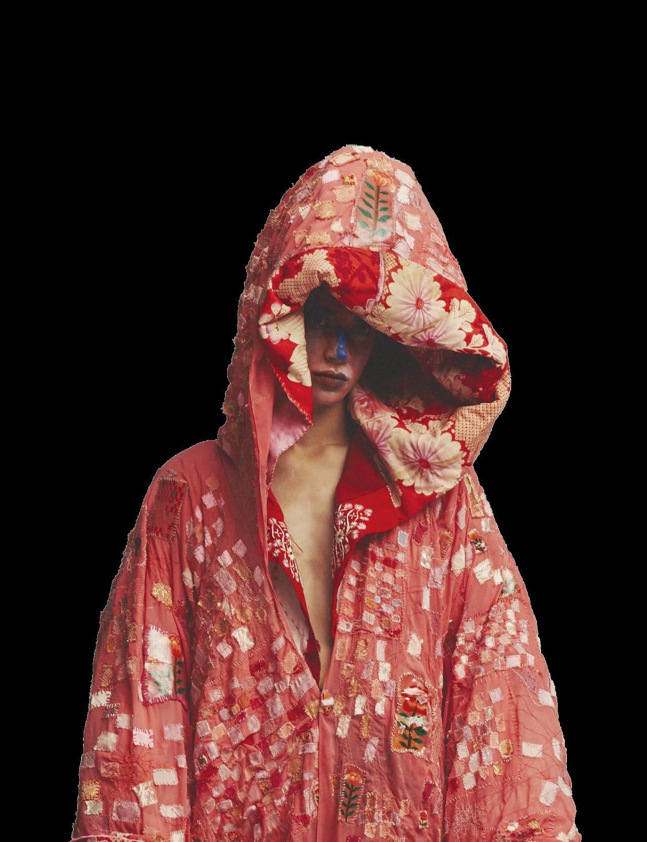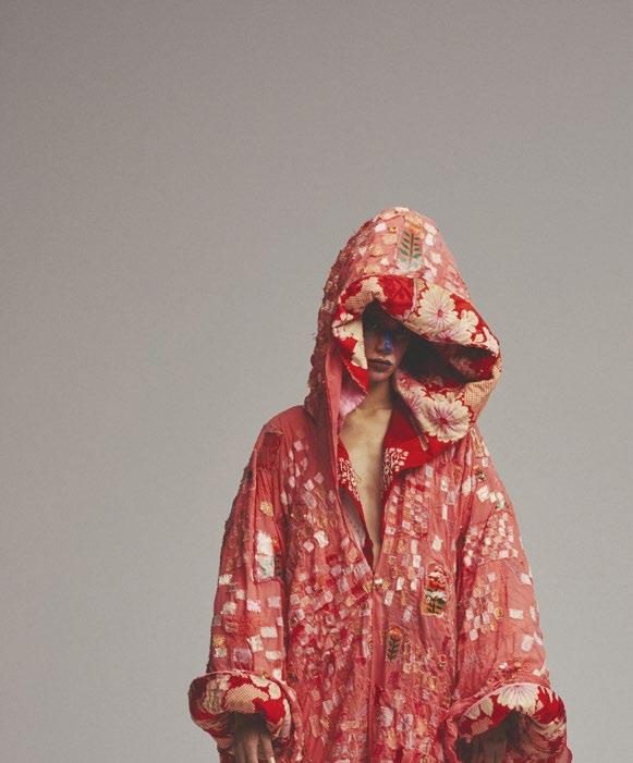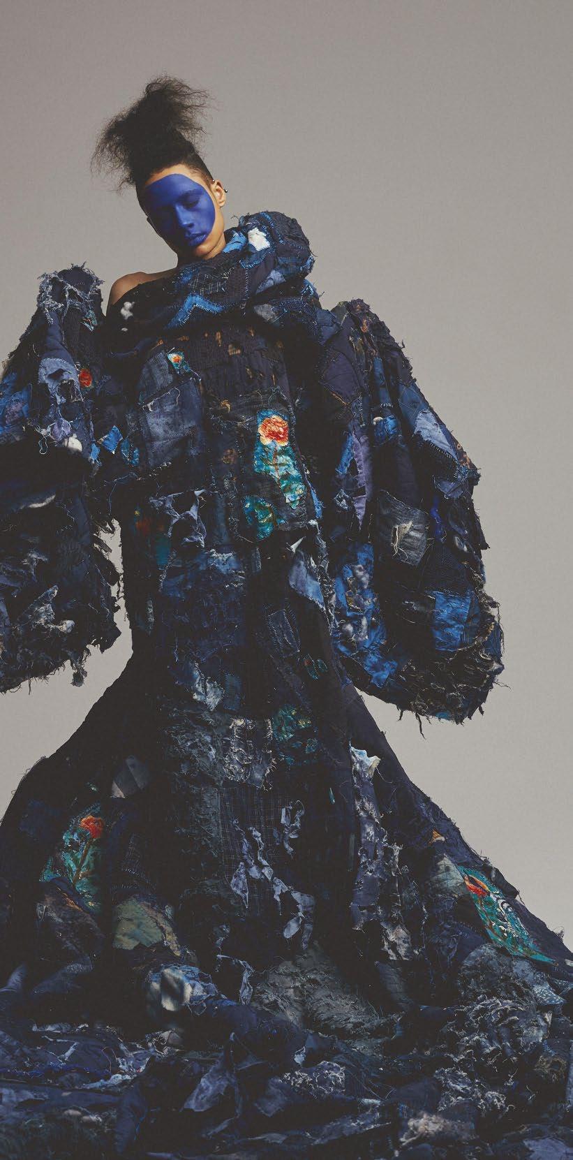 Quando eu era pequena, adorava vestidos que pareciam saídos de um mundo de fantasia. Mas tais vestidos têm suas raízes na Europa, na imagem da alta-costura esfarrapada. Estudei a história do vestuário japonês. A peça têxtil mais bonita com raízes japonesas, na minha opinião, é o “Boro”. “Boro” foi feito em Aomori, durante o período Edo. Naquela época, Aomori era muito fria e as pessoas lá eram pobres. Como não havia lã em Aomori, eles faziam suas próprias roupas com camadas de tecido de cânhamo e costuravam com linha.O design de “Boro” está profundamente relacionado ao fato de o Japão ser um país insular. Meu trabalho é influenciado pela espiritualidade, visual e processos do “Boro”, expressando alta-costura e moda através de seu filtro único.