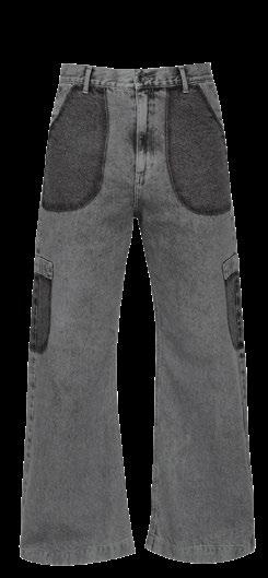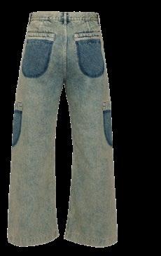 Descrição da peça: A calça toda se baseia na técnica Tromp-Lóeil, onde optaram por um processo de lavagem que proporciona uma ilusão de ótica; Dupla aplicação ‘QC Jeans’ espelhada na traseira.