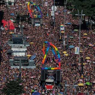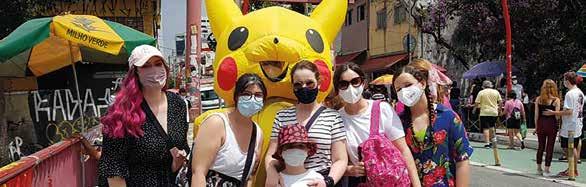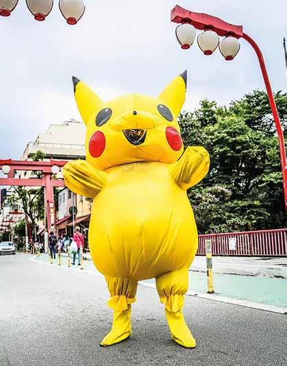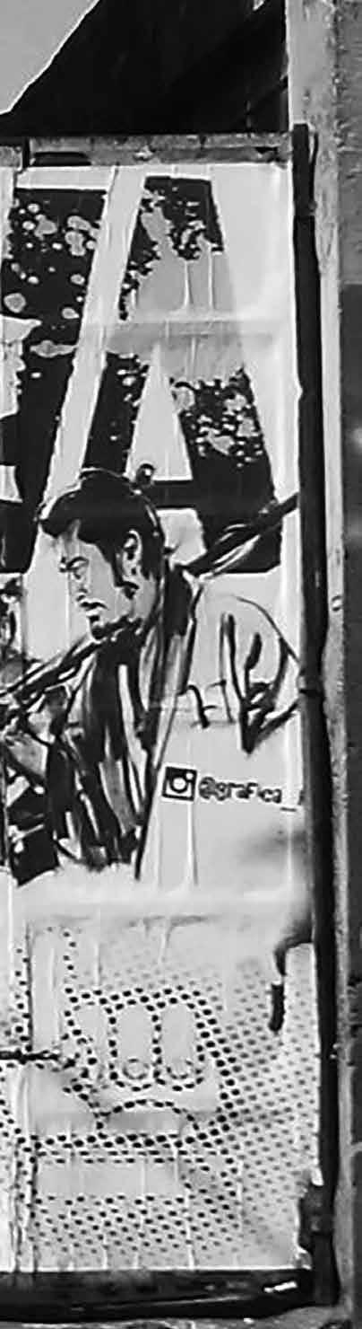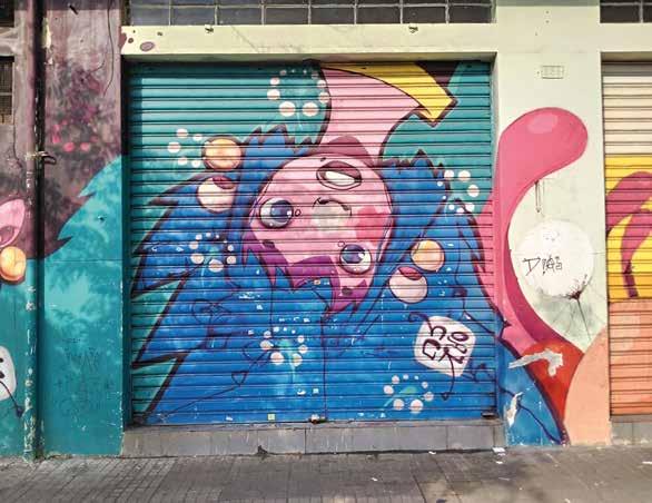 Yuri Ezreal é um dos artistas que contribui com a arte urbana no bairro. Fez um grafite na banca de Osmar e dona Ieda, que fica na esquina da rua da Glória com a dos Estudantes, exibindo uma mulher rosa com cabelo azul. Como uma musa, a arte colore o ambiente ao redor e a rua comercial. O artista mudou-se do Rio para o bairro paulistano durante o período crítico da pandemia, em busca de oportunidades profissionais. Para ele – que é apaixonado pela cultura oriental – deixar um grafite é uma forma de “retribuição” para o bairro que o acolheu. “Trazer o colorido transforma o ambiente e revitaliza o espaço”, justiça o grafiteiro, com orgulho.