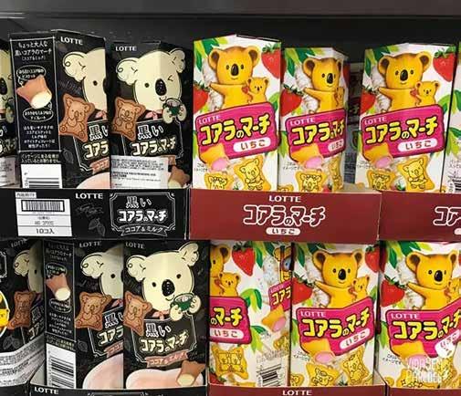 Os biscoitos Koala March são os produtos mais conhecidos da marca Lotte, é sensação no Japão. É quase impossível comprar doces japoneses e não querer levar um Koala para casa. Além do formato divertido de coala em diversas expressões e roupinhas fofas, o biscoito é leve e crocante e o recheio é delicioso.