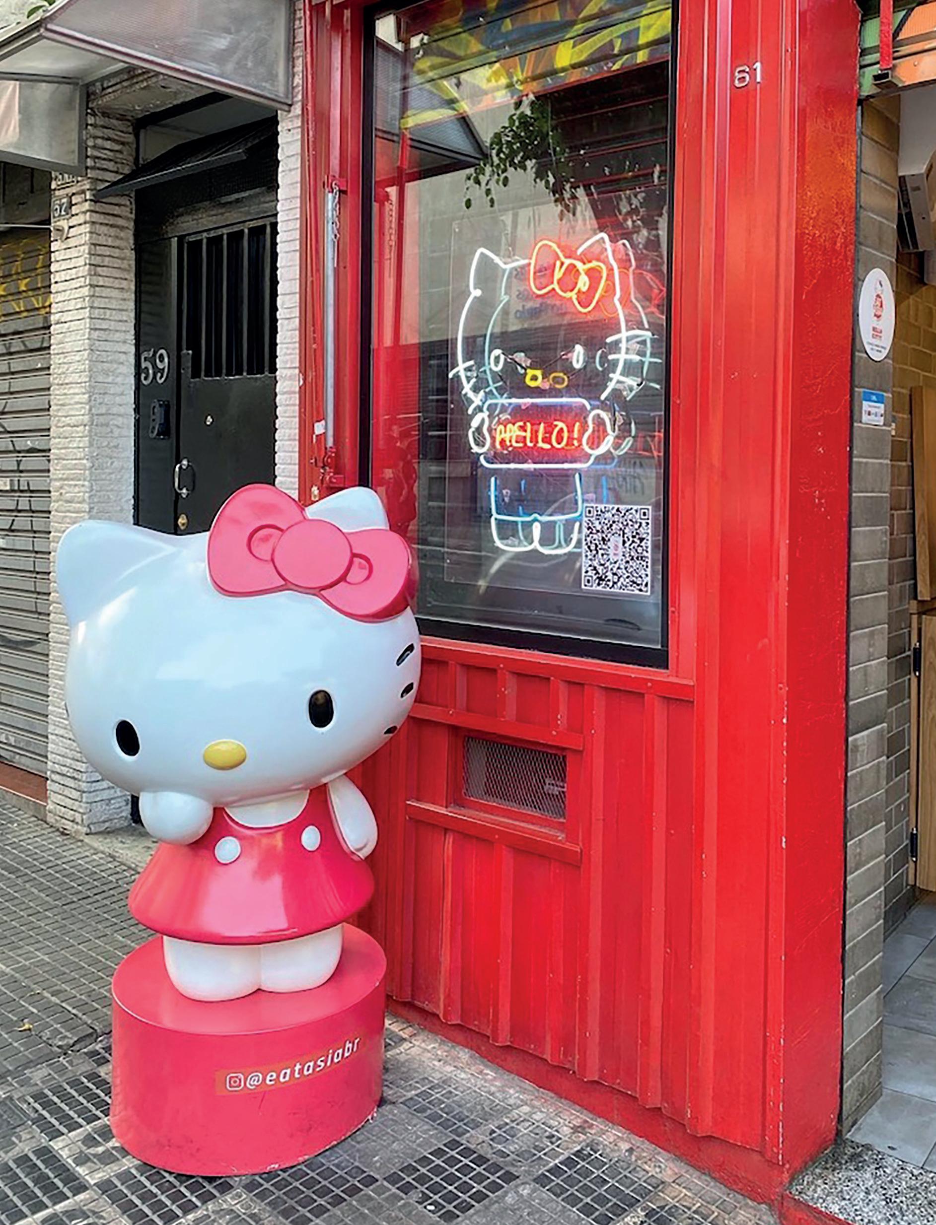 O restaurante da Hello Kitty se chama Eat Asia, inspirado pelas vilas asiáticas, que obteve licença da marca para transformar as instalações em um local temático. São duas unidades, sendo uma delas totalmente dedicada à personagem, na rua Thomaz Gonzaga, 61.