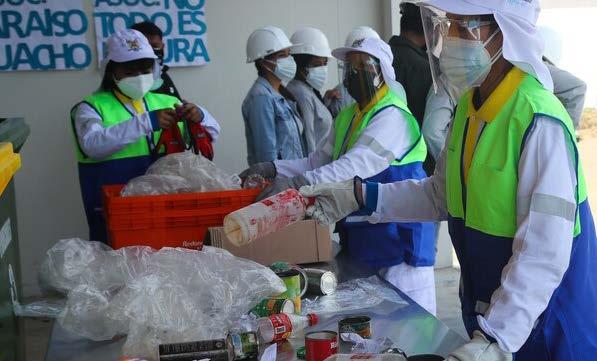 Recicladores de lixo peruanos em um dia comum de trabalho no centro de reciclagem Peruano
