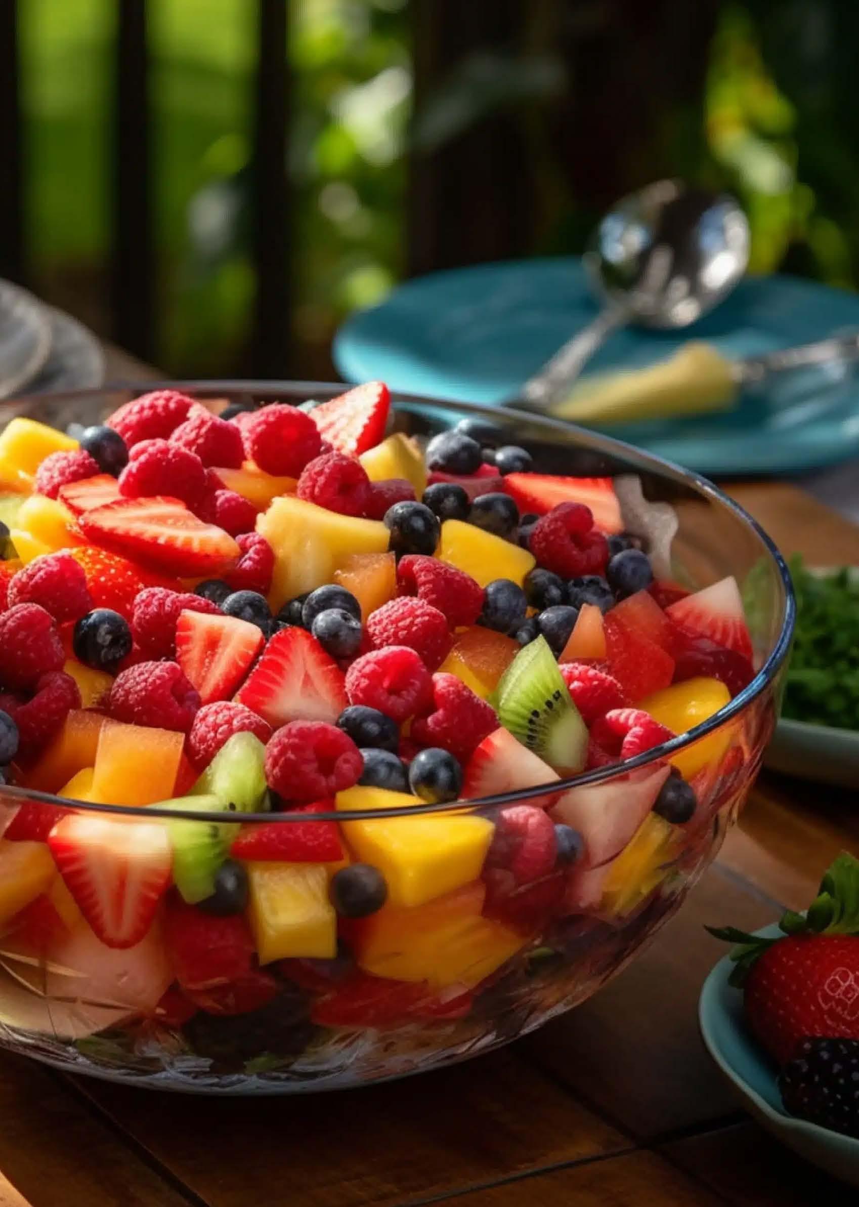 5. Despeje o creme sobre as frutas e misture delicadamente!