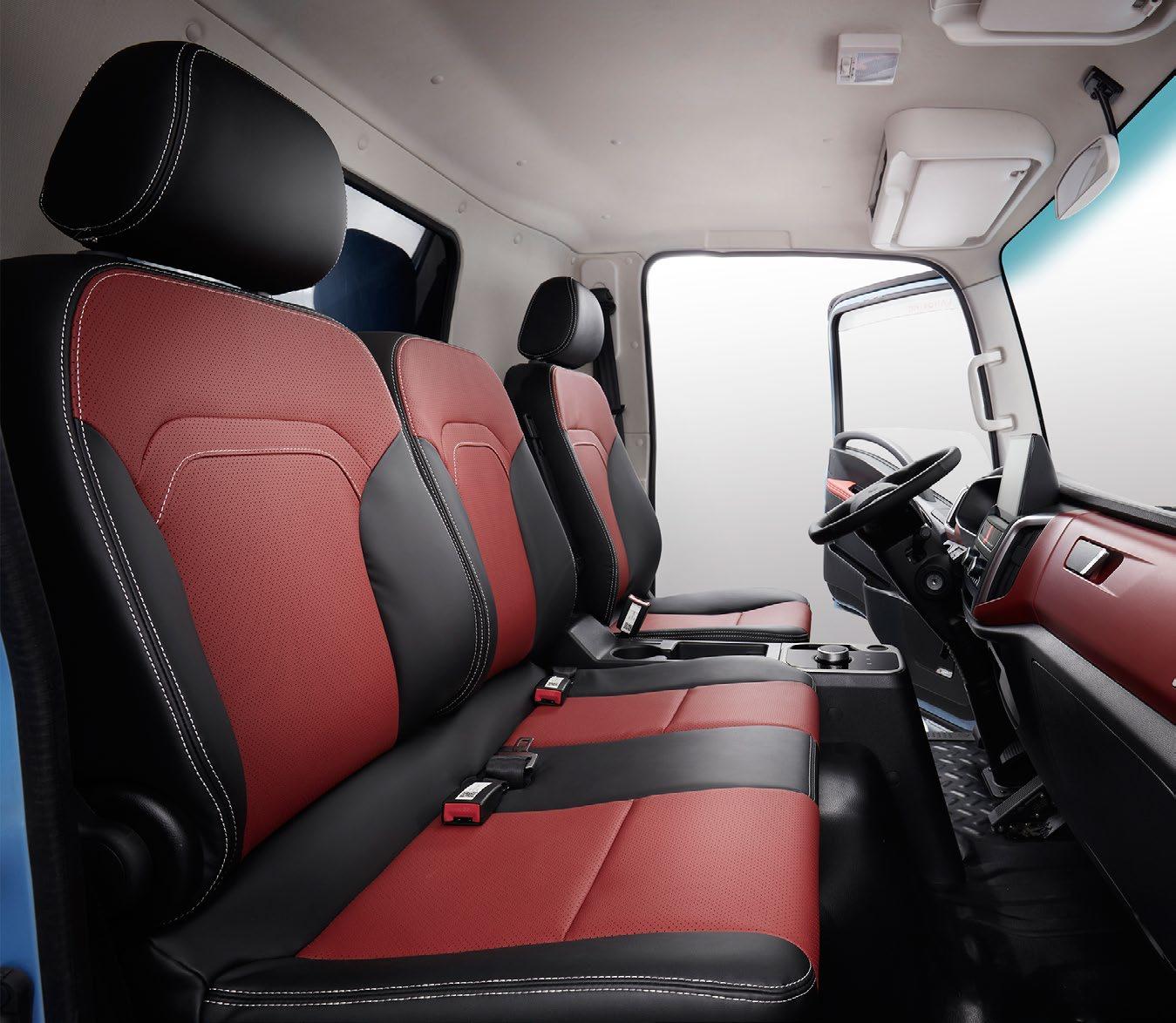 La banqueta guía cuenta con descansa brazos y cinturón de seguridad de tres puntas retráctil. La nueva unidad tiene ventanas del salón con vidrios pegados y ahumados que incluyen banderolas en segundas y penúltimas ventanas,