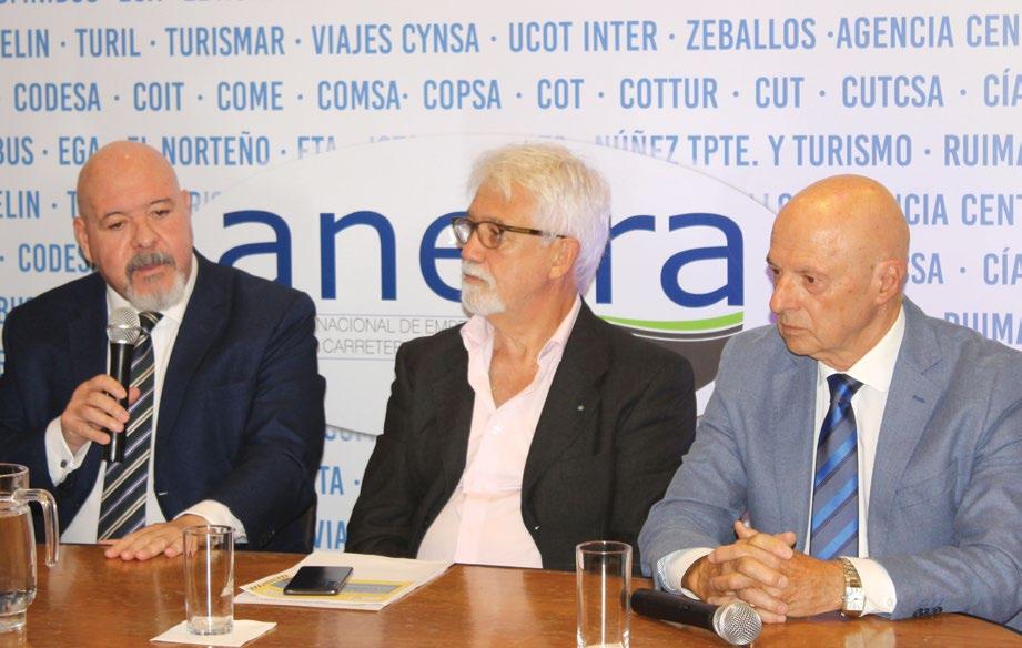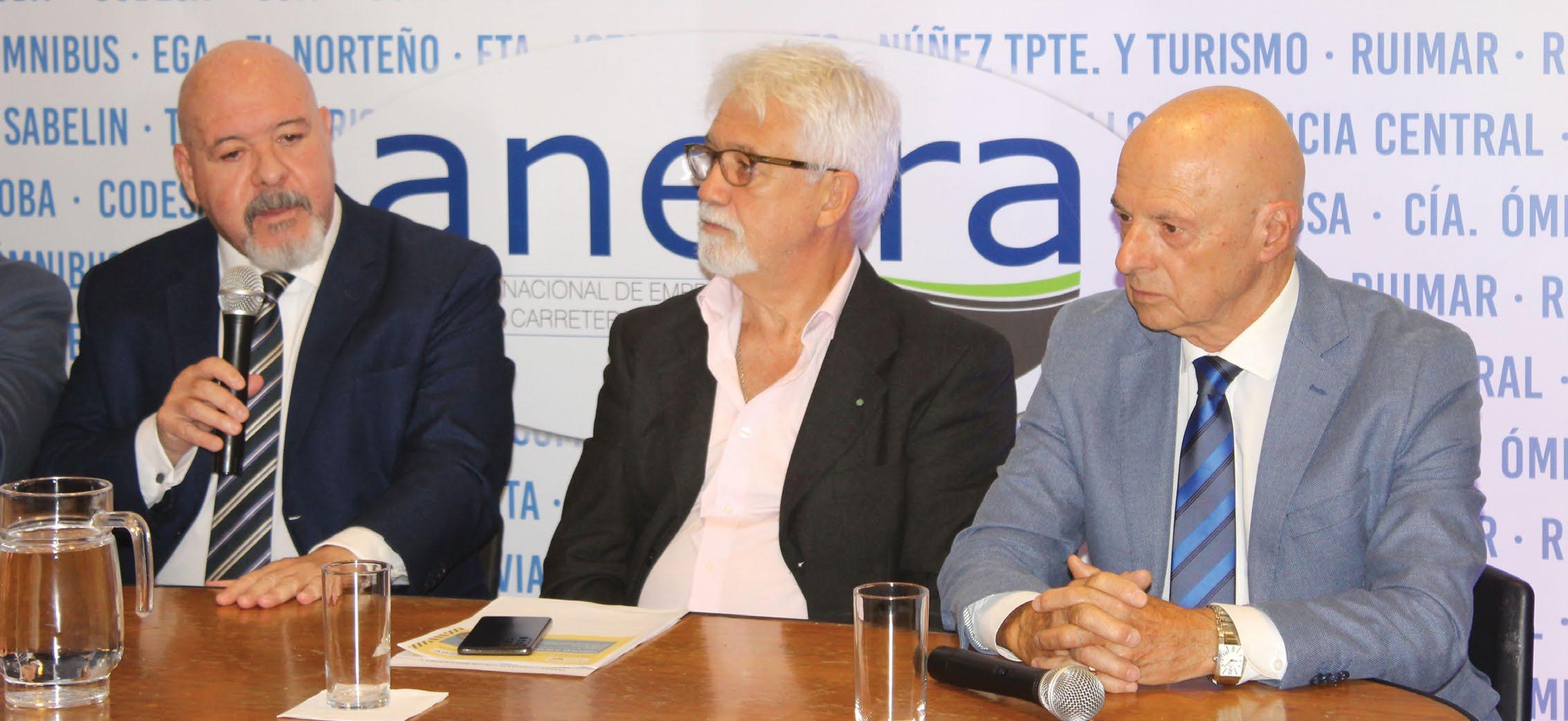 PABLO LABANDERA, DIRECTOR NACIONAL DE TRANSPORTE; WALTER SOSA, PRESIDENTE DE ANETRA, Y ARTURO BORGES, DIRECTOR DE ISEV