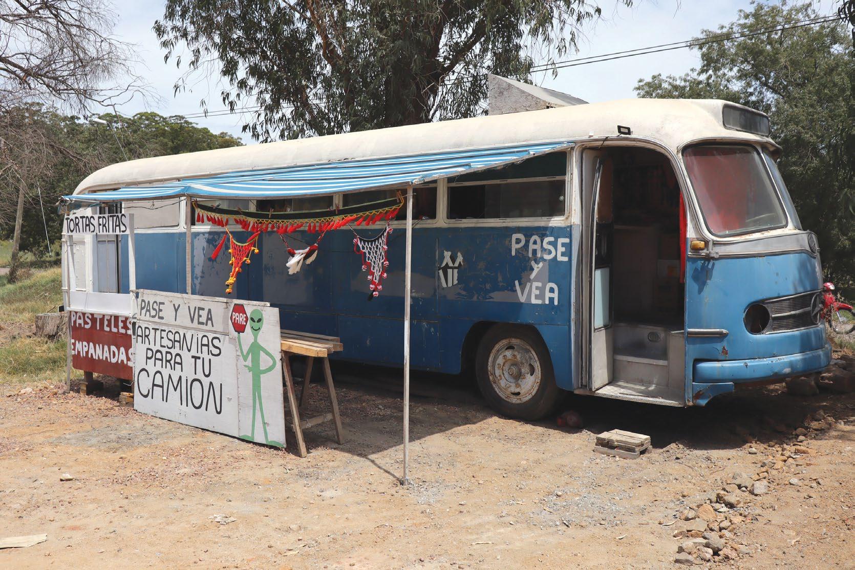 En el estacionamiento de camiones sobre la ruta 5 a la altura de Sarandí Grande, hay un veterano ómnibus Mercedes Benz que ya no funciona pero que oficia de negocio y casa. Varios camioneros a lo largo del día pasan a buscar sus pedidos para decorar sus camiones.