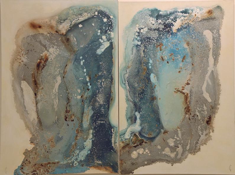 A través de una serie de obras pictóricas, la artista propuso un recorrido por las múltiples formas del agua: su calma, su furia, su transparencia y su capacidad de transformación. Las texturas, los materiales y los colores se fundieron en una narrativa visual potente, donde cada obra evocaba emociones y paisajes internos.
