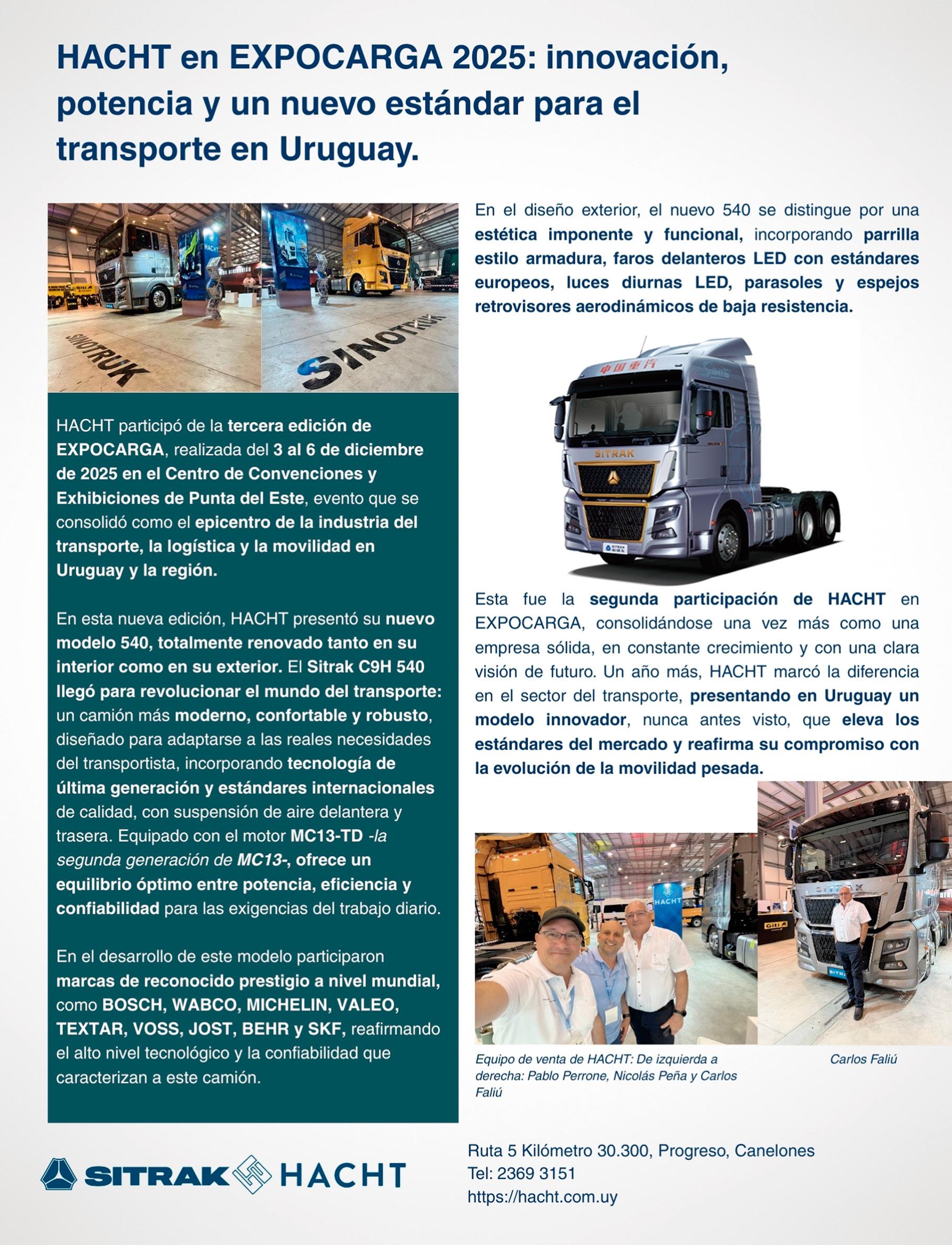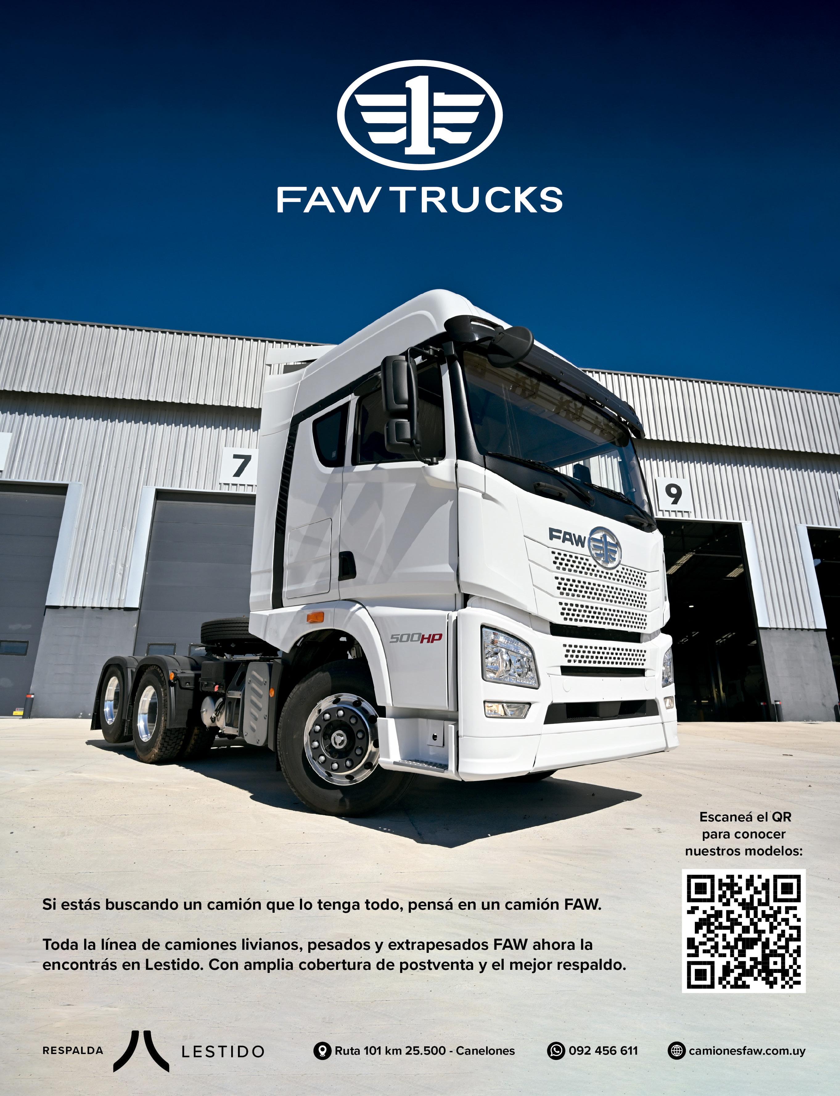36. LOGÍSTICA: Starfish y JR Williams desembarcaron en Expocarga por primera vez y presentaron en conjunto un menú de servicios que cubre todo el ciclo operativo del transporte internacional. 26. ELÉCTRICOS: JMC, marca representada por Santa Rosa, suma otro lanzamiento en el mercado; esta vez lo hace con la incorporación del primer camión eléctrico de la marca en Uruguay.