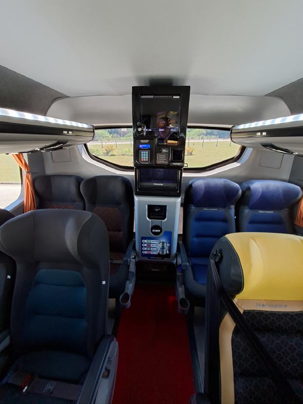 “El Concept Bus nació con la idea de mostrar todo lo que se puede incrementar en un ómnibus: lo más lujoso, las distintas configuraciones internas, tejidos, climatización y una amplia gama de opcionales que muchas veces el cliente final no llega a conocer”, explicó Prestes. Marcopolo se reinventa de forma permanente, incorporando nuevas soluciones que no siempre pueden reflejarse en un folleto, y este vehículo permite presentarlas de manera tangible.