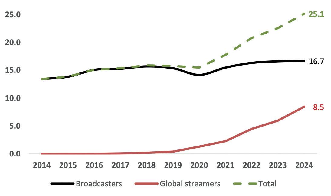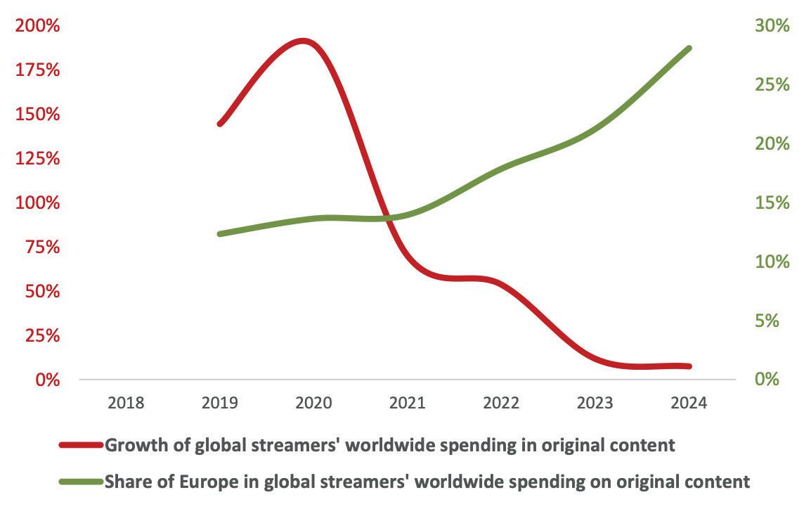 GROWTH RATE OF GLOBAL STREAMERS' INVESTMENT IN CONTENT, AND EUROPE'S SHARE