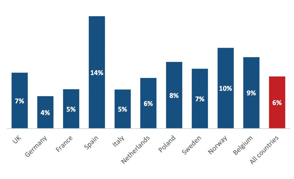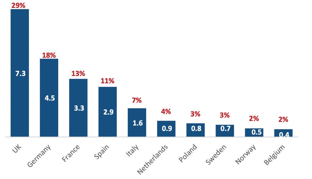 TOP 10 COUNTRIES AND SHARE OF TOTAL SPENDING ON EUROPEAN ORIGINAL CONTENT